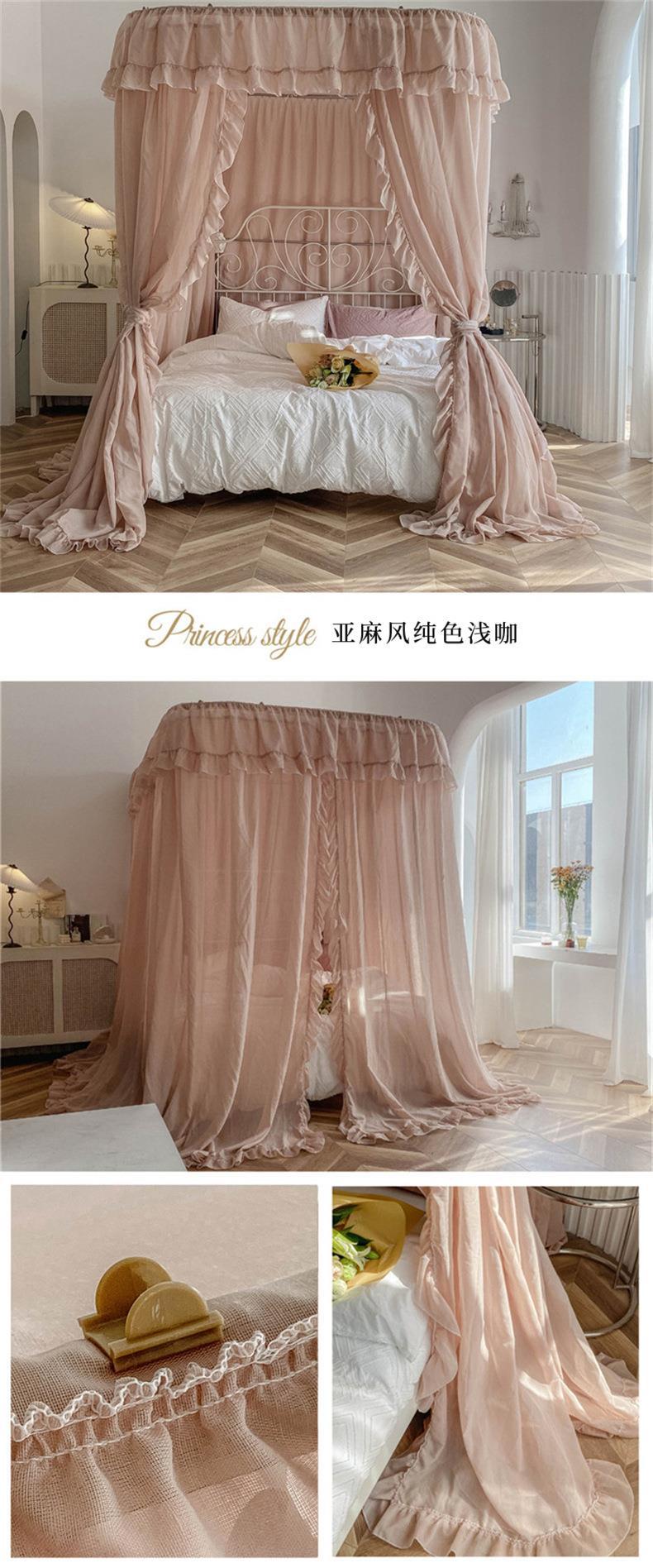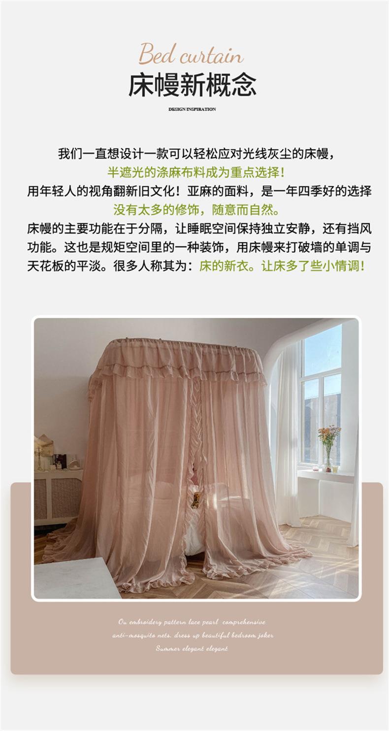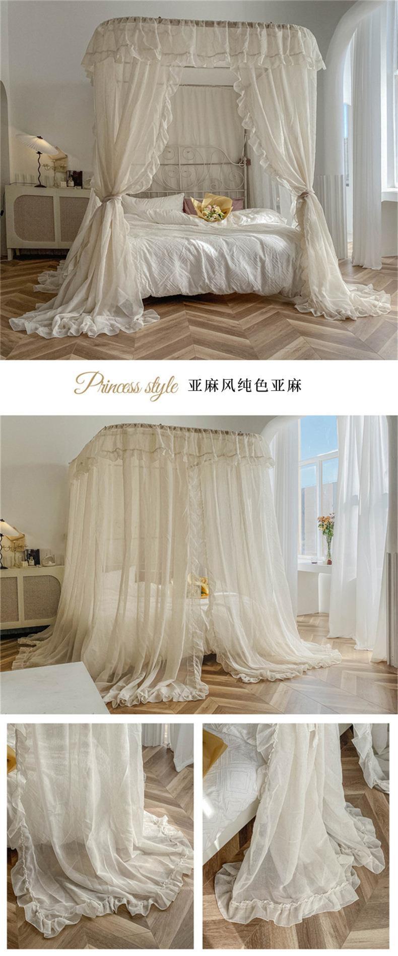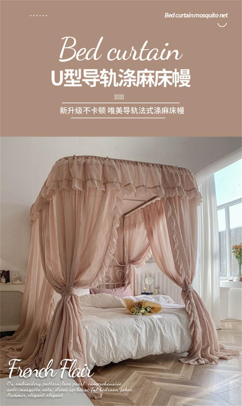 2025년 신형 U자형 레일형 린넨 침대 커튼 1.8 가정용 침실 공주풍 바닥형 모기장 레일형 침대 커튼스토어 가기