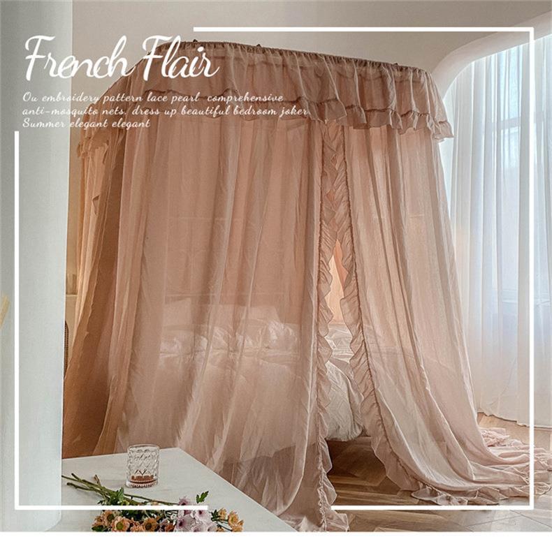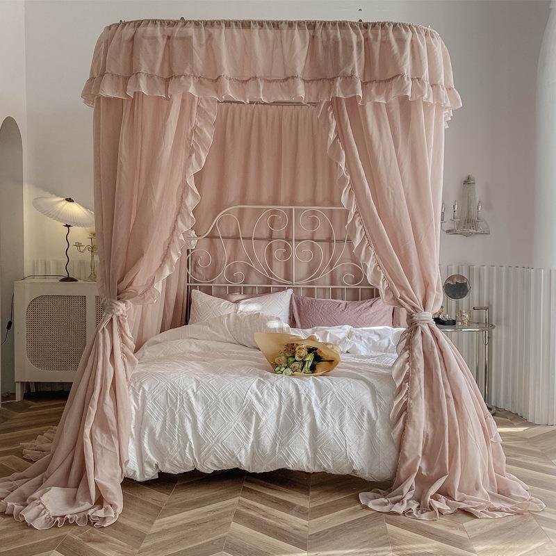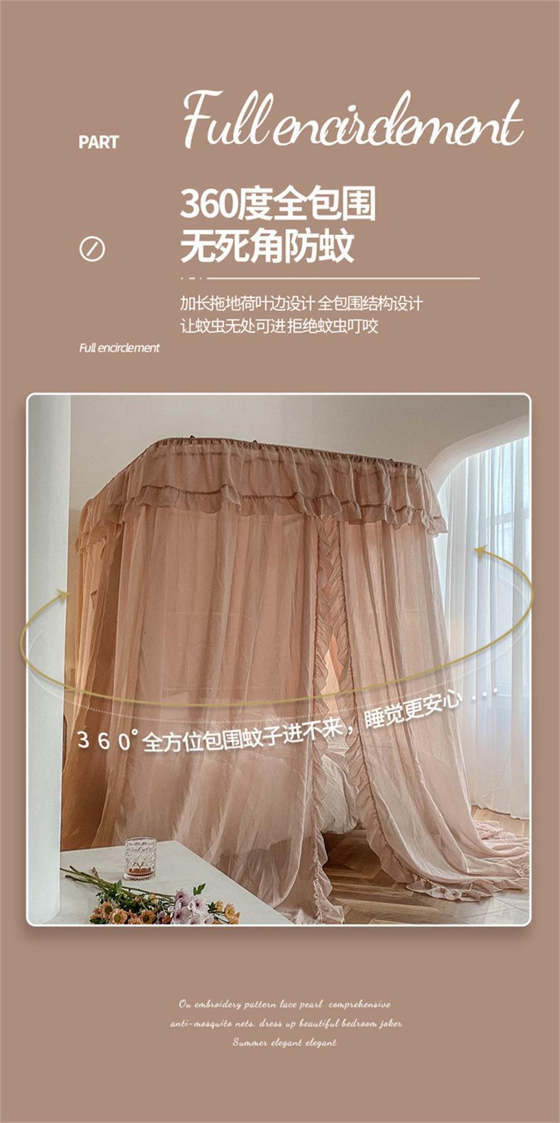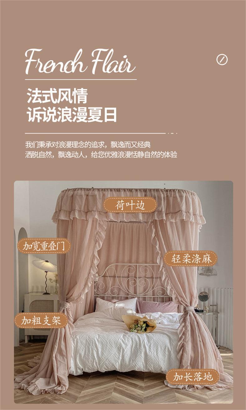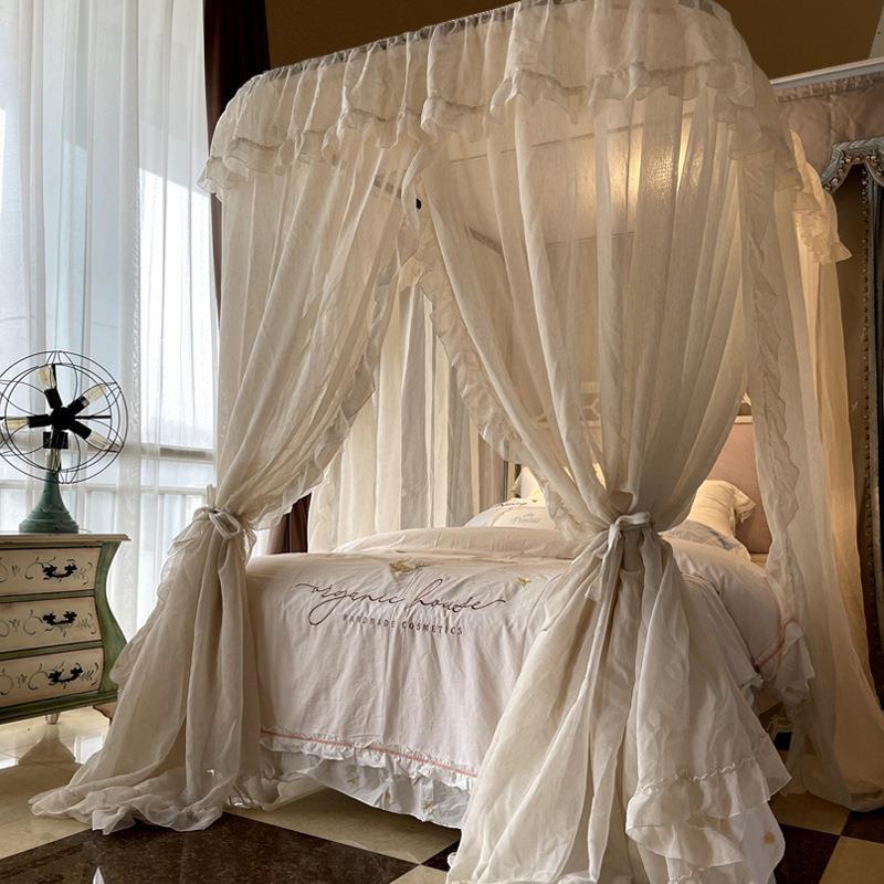 2025년 신형 U자형 레일형 린넨 침대 커튼 1.8 가정용 침실 공주풍 바닥형 모기장 레일형 침대 커튼스토어 가기