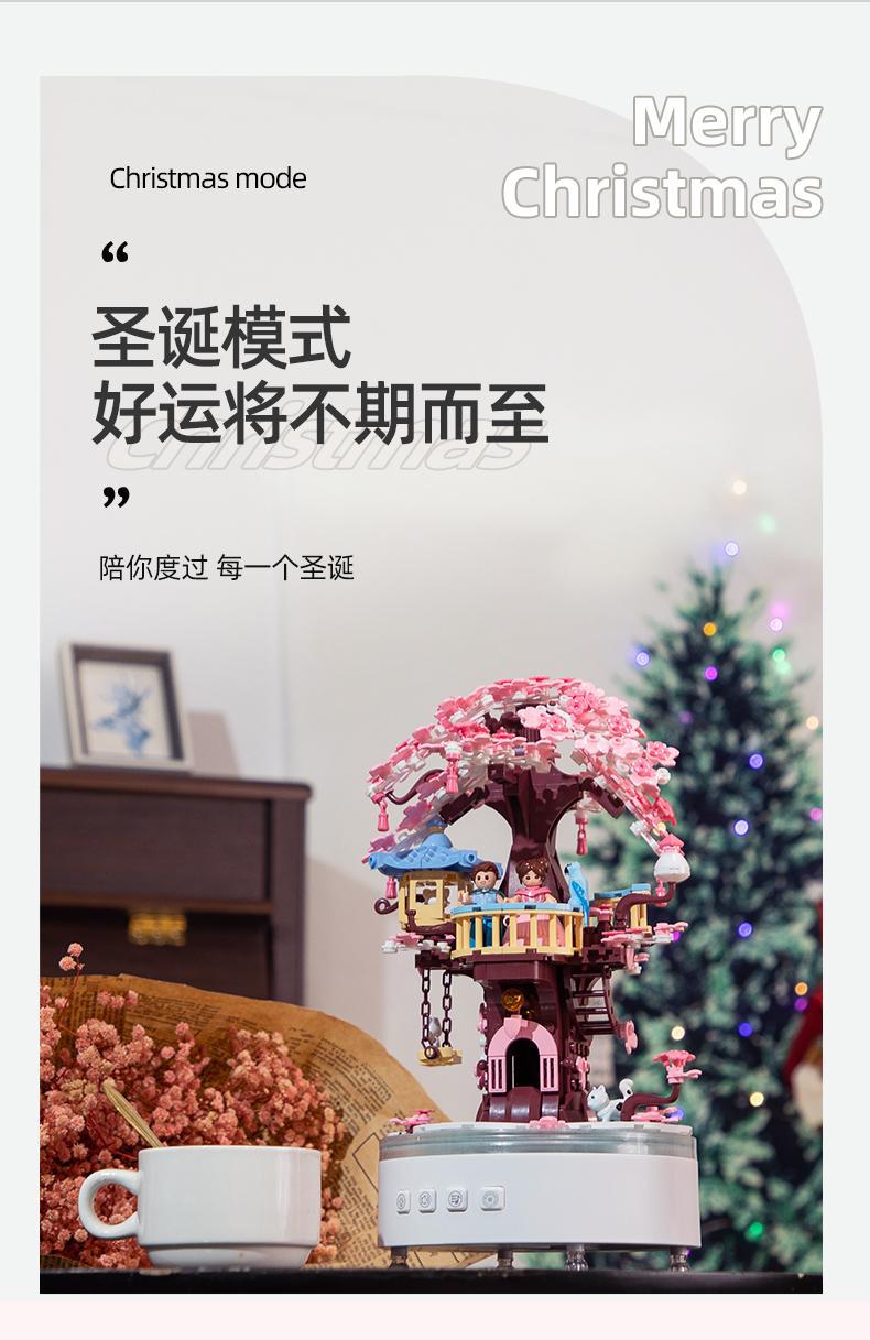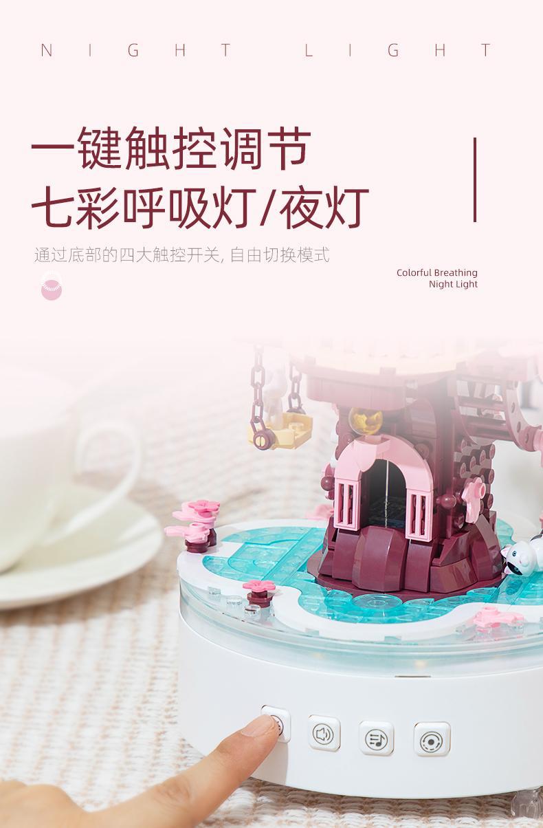 리틀 루반 빌딩 블록 꽃 소원 벚꽃 나무 뮤직 박스 조립 어린이 교육 완구 소녀 커플의 생일 선물