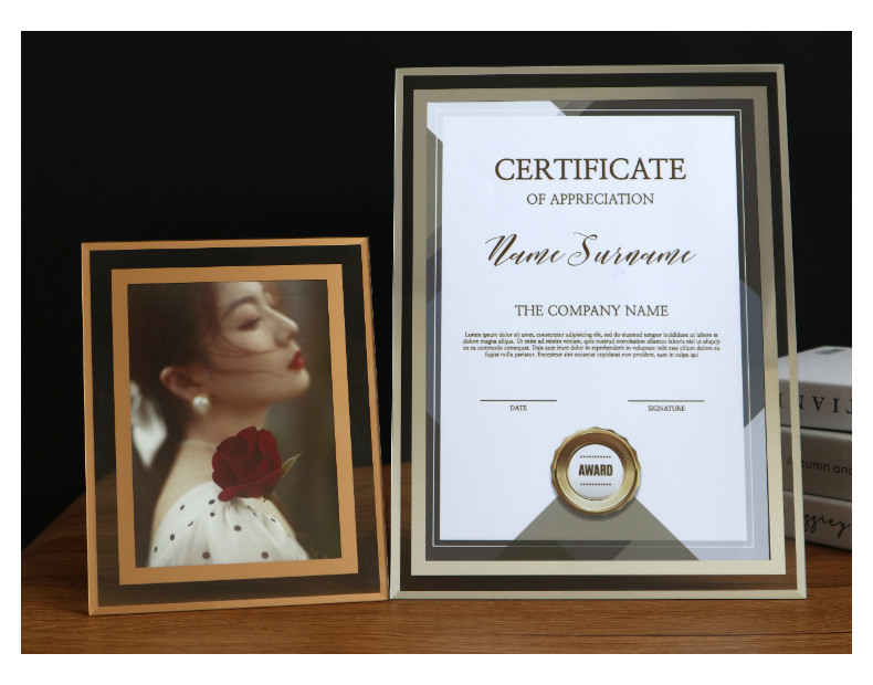크리스탈 유리 사진 프레임 56 인치 7 인치 8 인치 A5A4 인증서 프레임 테이블 웨딩 사진 선물 상자 공장 도매스토어 가기