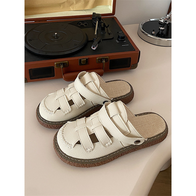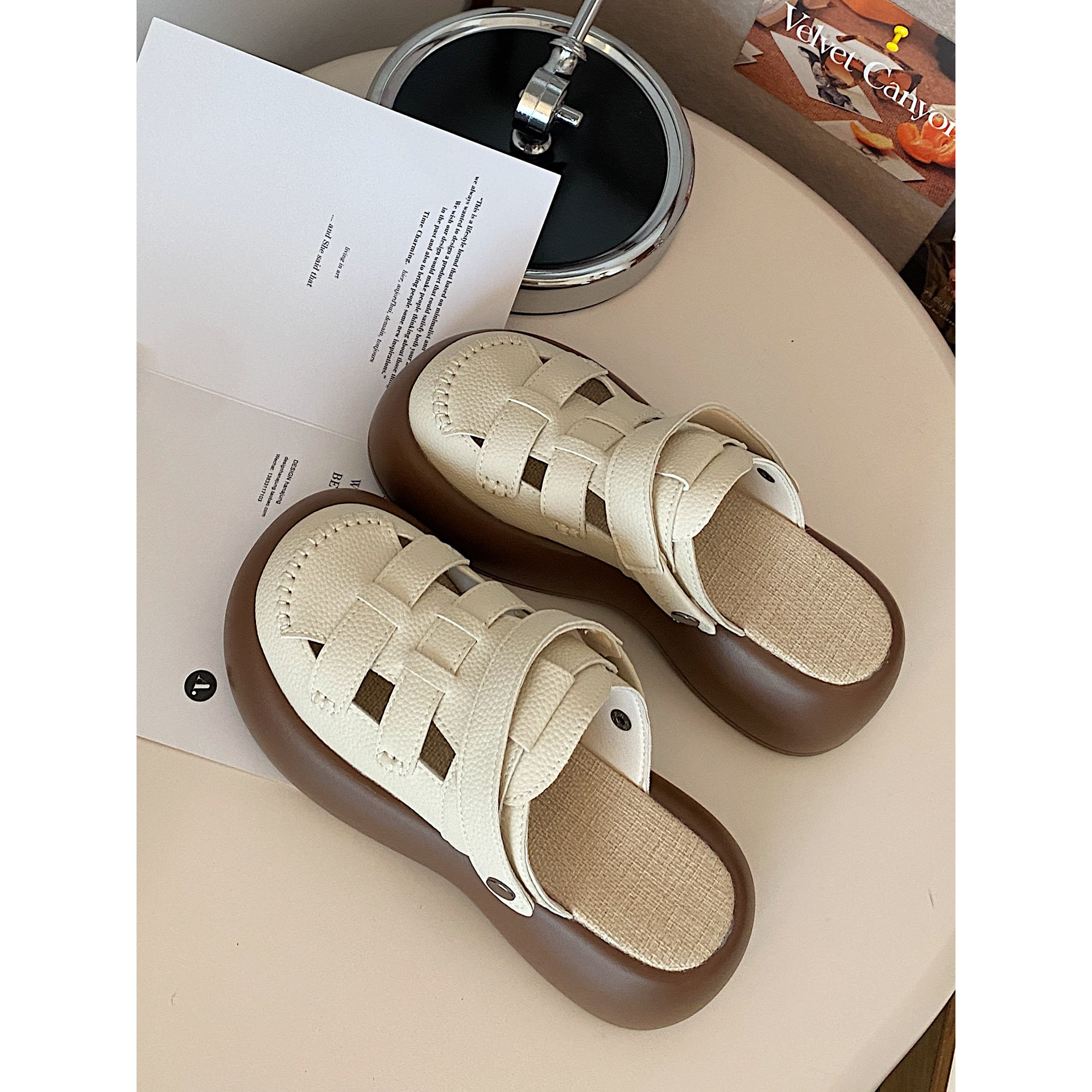 폭발 투웨어 짠 발가락 플랫폼 샌들 여성용 2023 년 새로운 여름 화이트 캐주얼 모든 매치 로마 신발스토어 가기