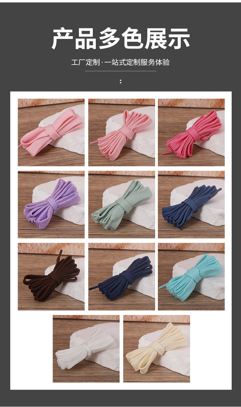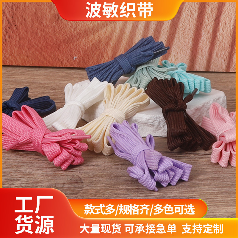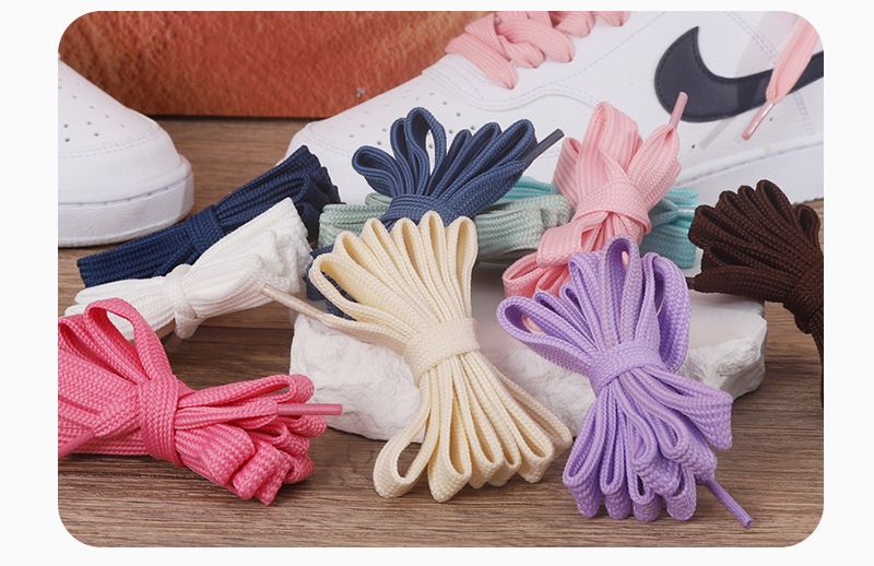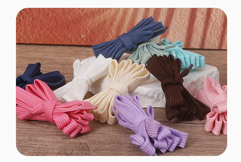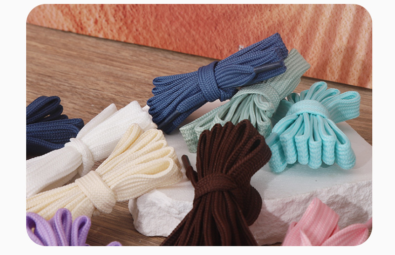 남성과 여성을위한 공장 직접 도매 이중 평면 폴리 에스테르 색상 짠 신발 끈 로프 작은 흰색 신발 캔버스 신발스토어 가기