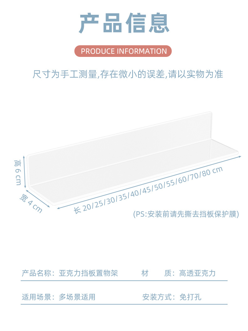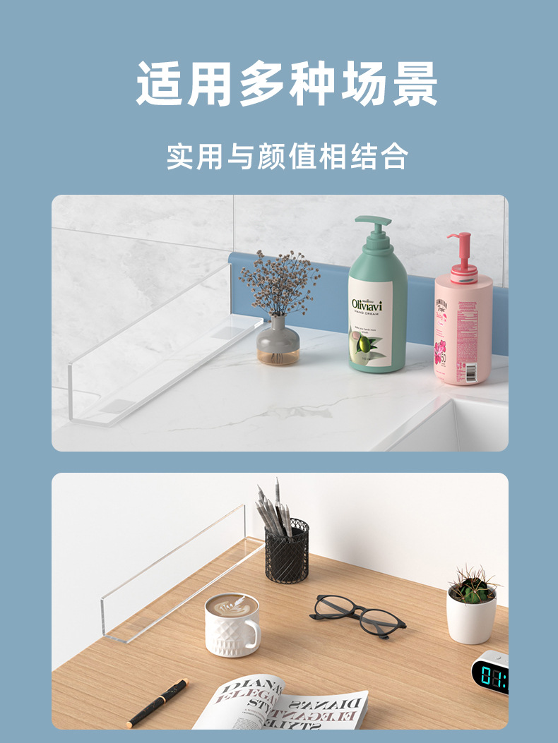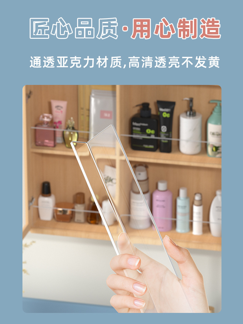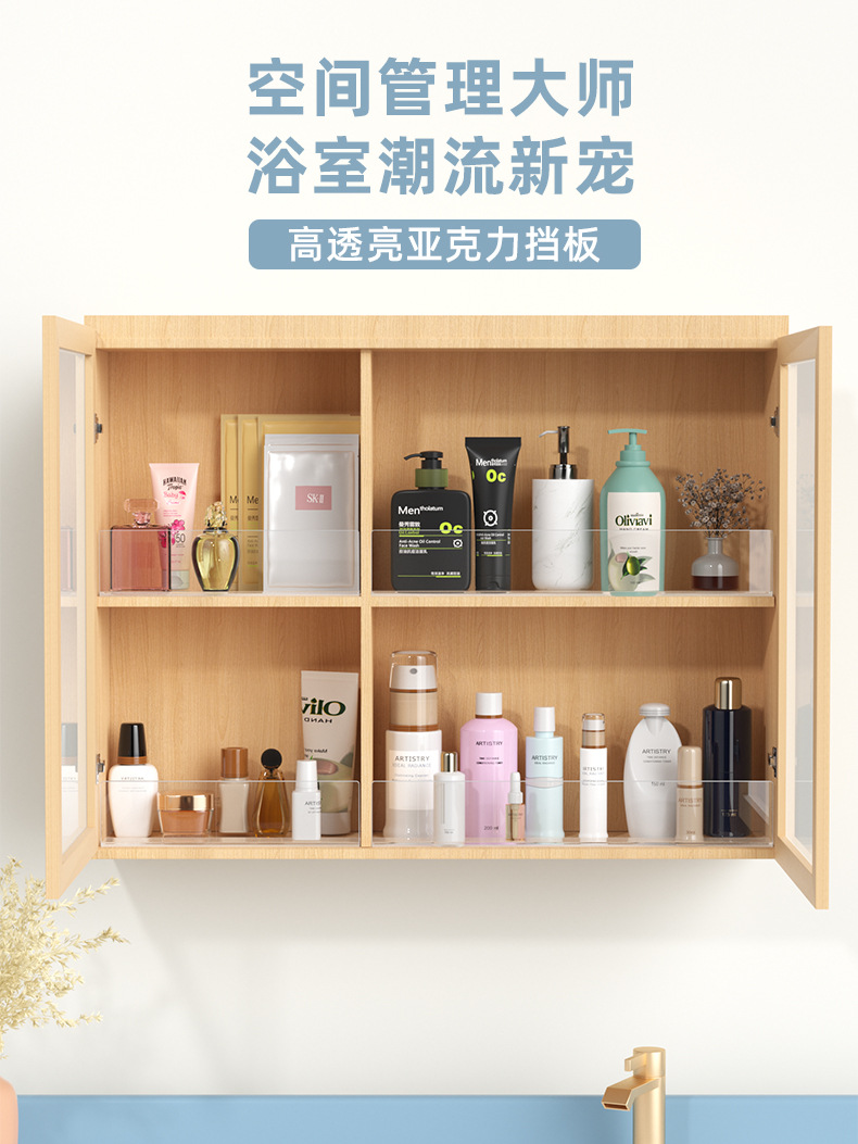 거울장 보호판 L형 아크릴 욕실 수납 화장품 낙하 방지 레이어드 무타공 칸막이 L형
