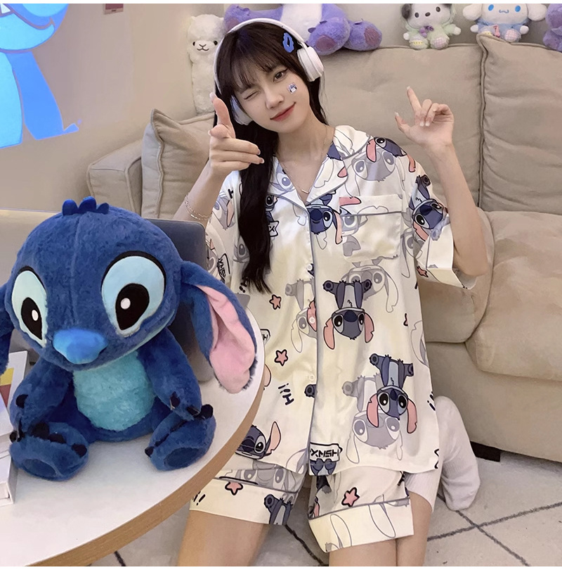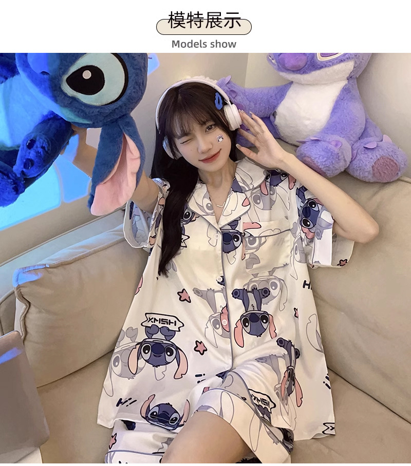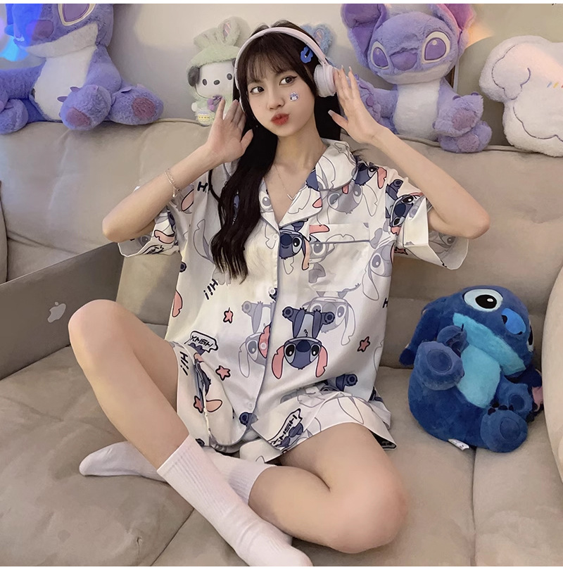 아이스 실크 잠옷 여자의 2023 새로운 여름 얇은 반팔 여름 귀여운 만화 고급 가정 의류 세트스토어 가기