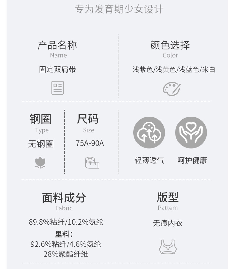 여아 속옷 개발 기간 작은 조끼 중학교 고등학교 학생 여성 여름 얇은 사춘기 큰 아이 여아 브래지어스토어 가기