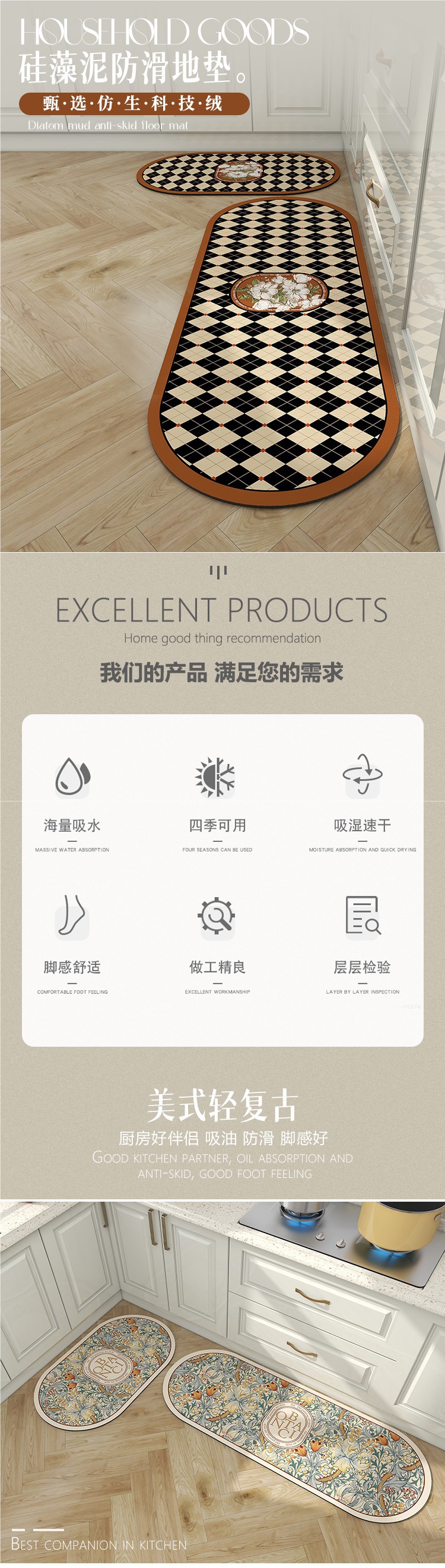 아메리칸 스타일 라이트 럭셔리 주방 바닥 매트 카펫 미끄럼 방지 물 흡수 오일 흡수 욕실 규조 진흙 더러운 방지 매트 부드러운 긴 발 매트스토어 가기