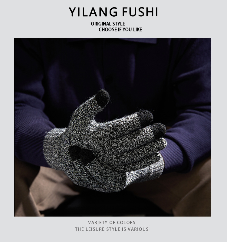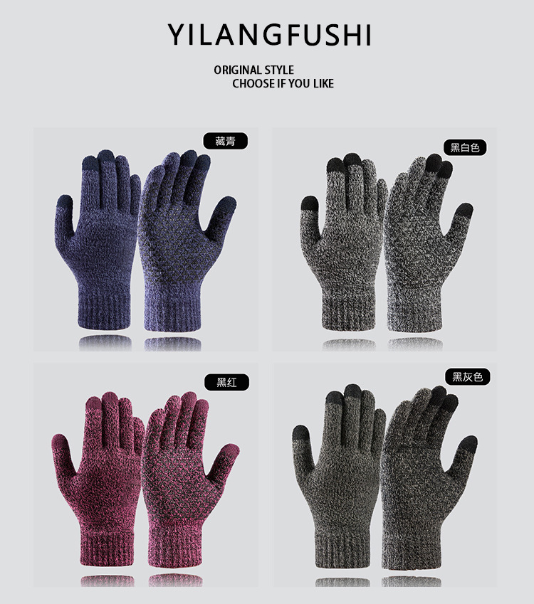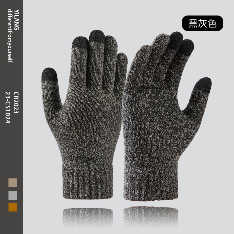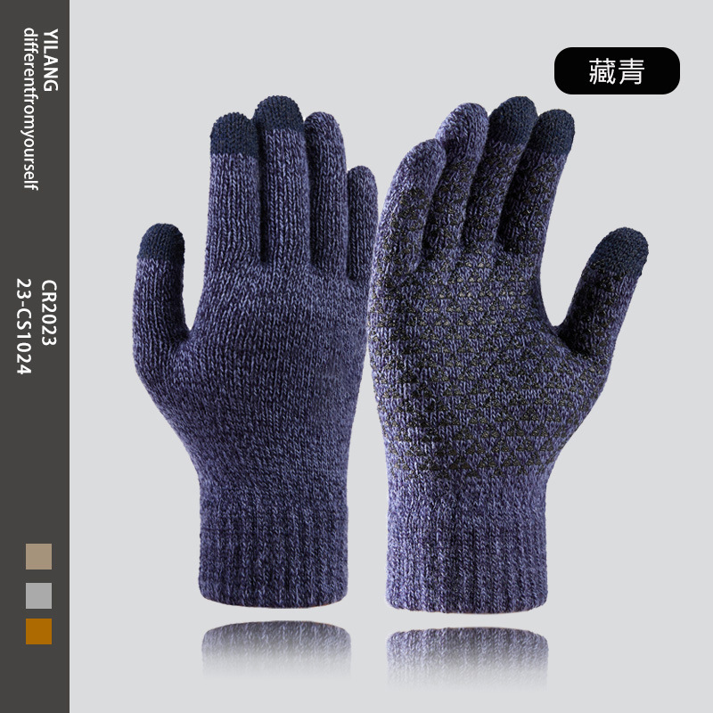 2025 가을, 겨울 남성 따뜻한 야외 니트 장갑 플러스 벨벳 두꺼운 사이클링 장갑 미끄럼 방지 터치 스크린 장갑