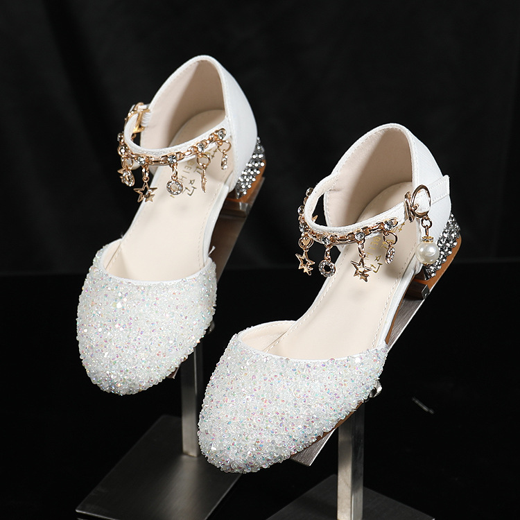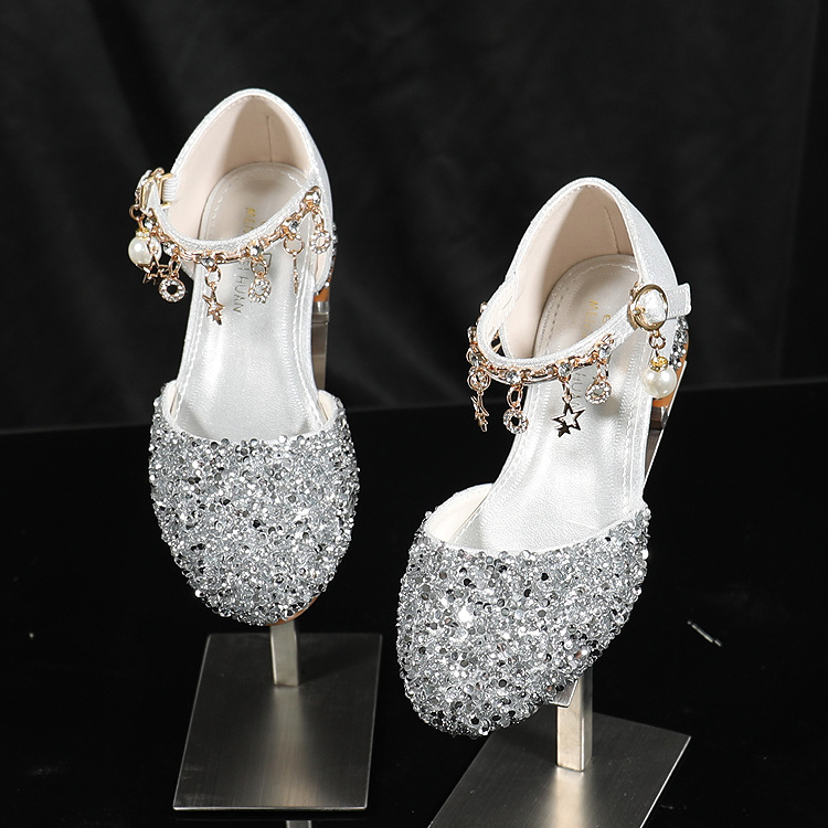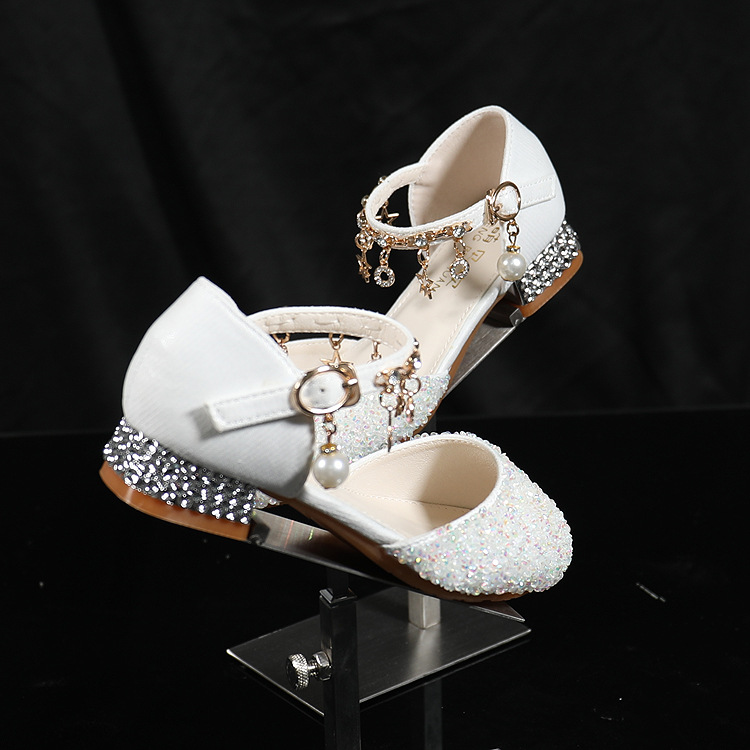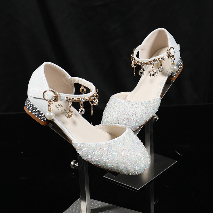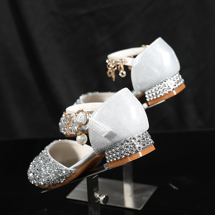 여자 신발 2023 여름 테이블 성능 원피스 크리스탈 부드러운 바닥 공주 어린이 가죽 신발 어린 소녀 하이힐 신발스토어 가기