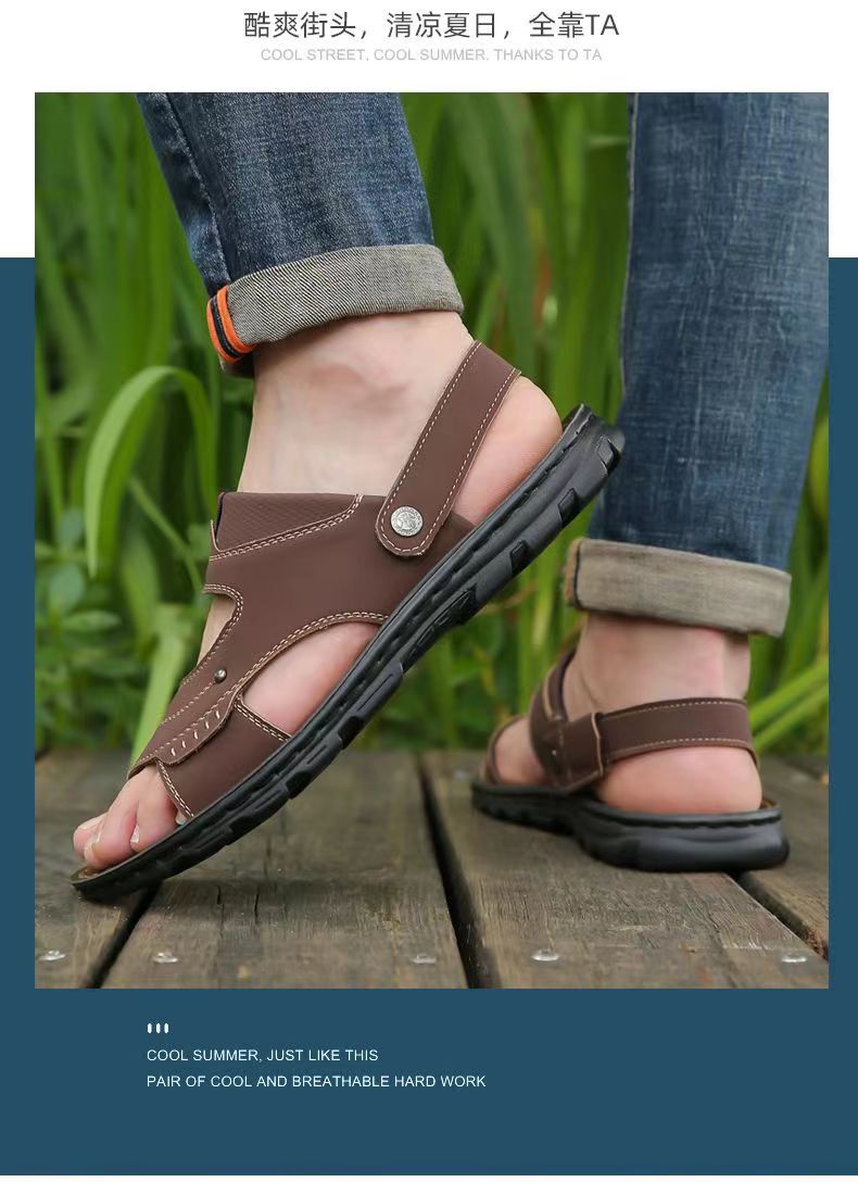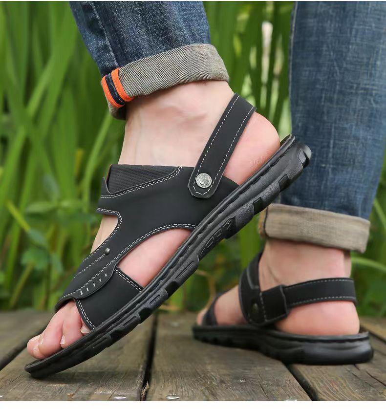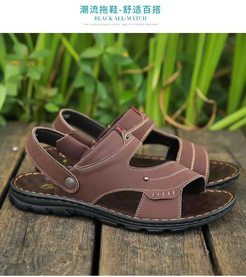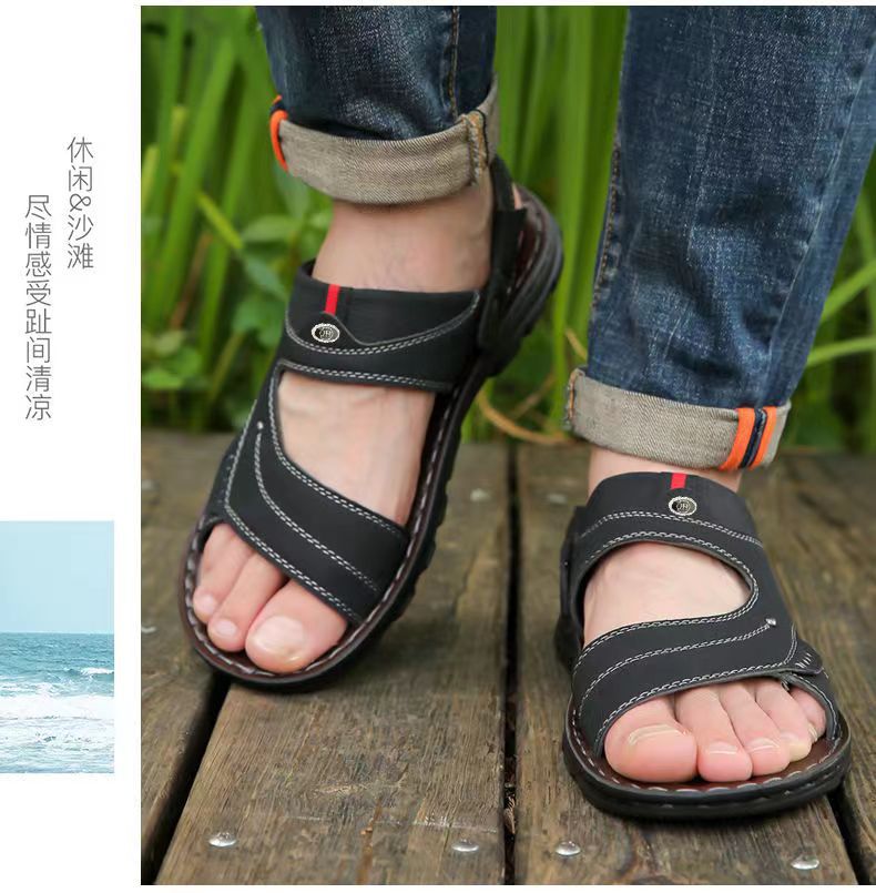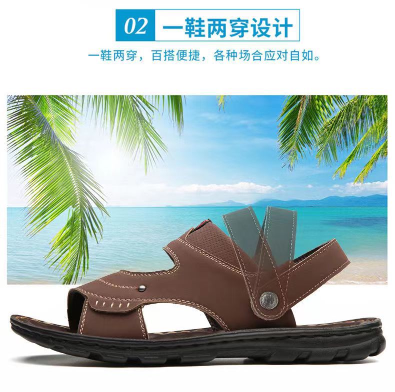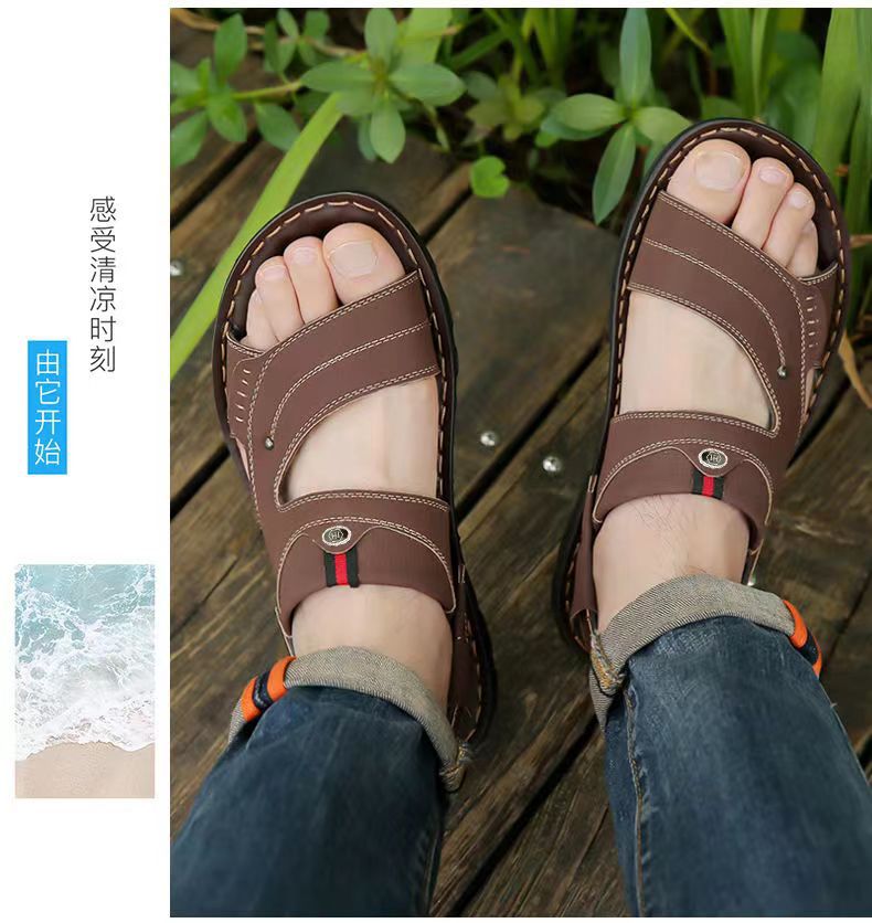 샌들 남자 여름 새로운 오픈 발가락 청소년 이중 사용 비치 신발 방수 중년 남성 슬리퍼