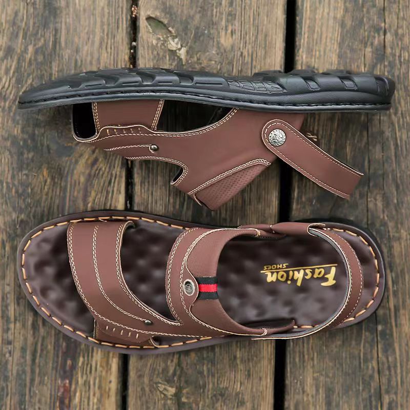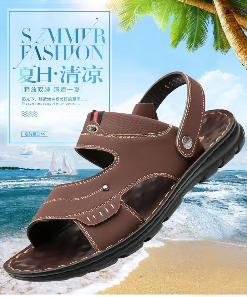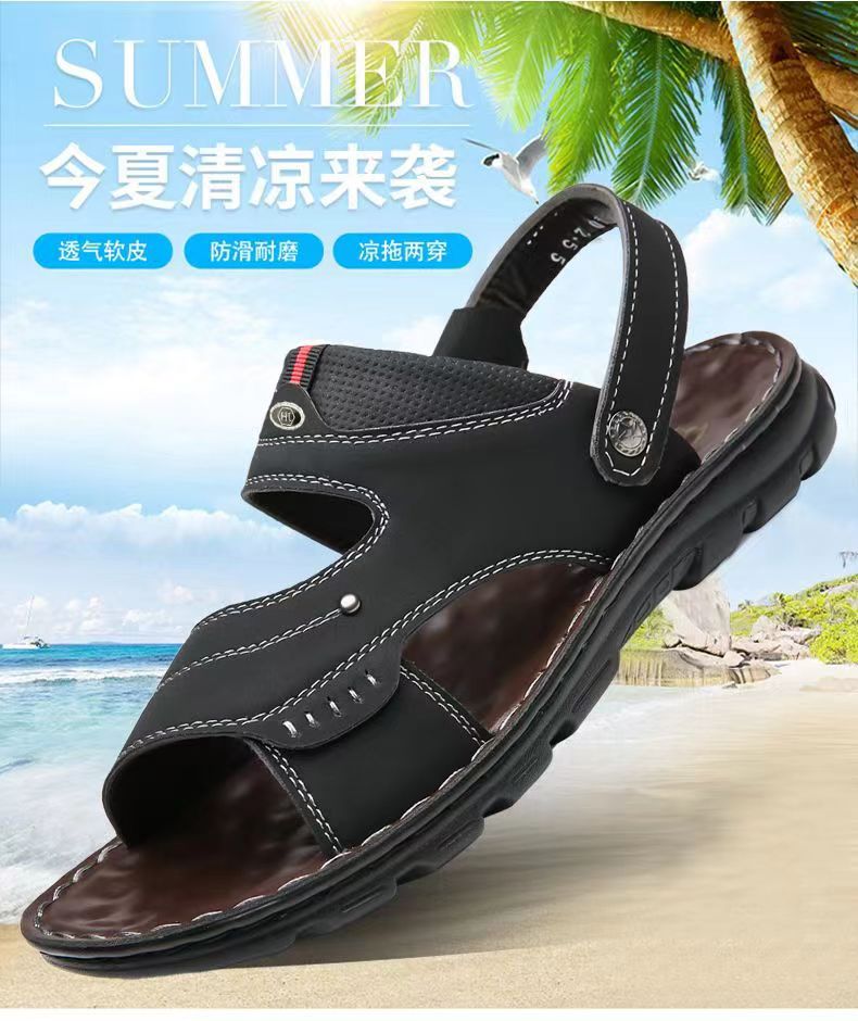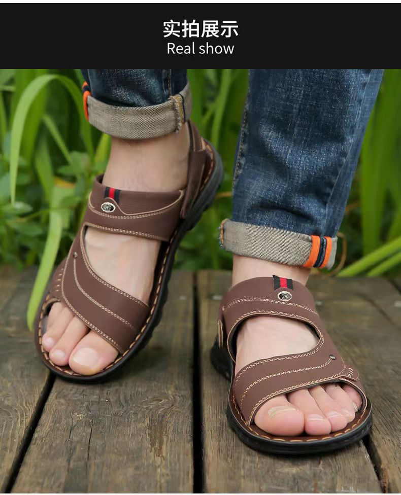샌들 남자 여름 새로운 오픈 발가락 청소년 이중 사용 비치 신발 방수 중년 남성 슬리퍼스토어 가기