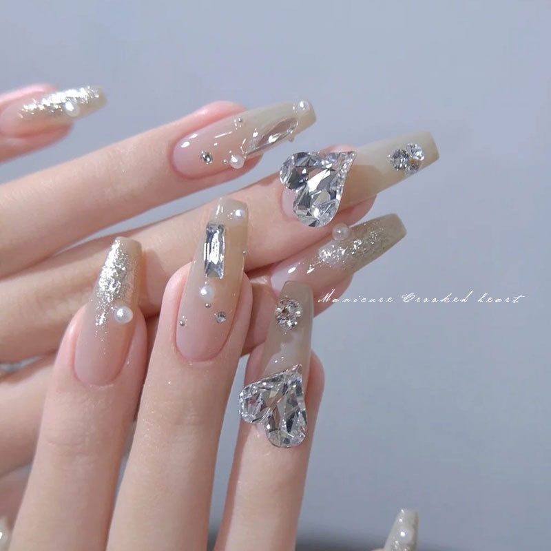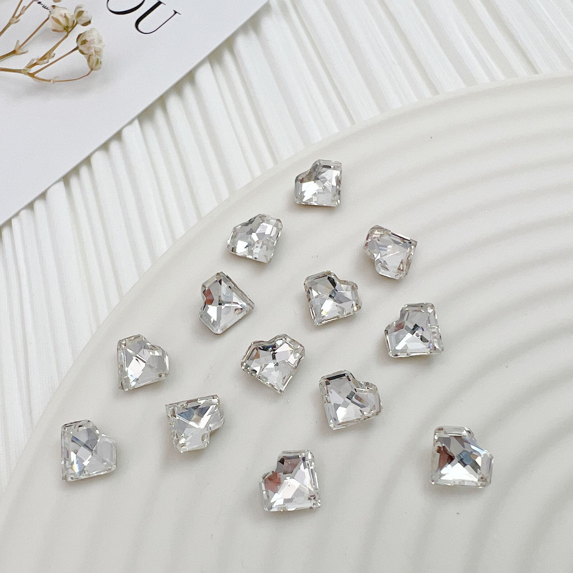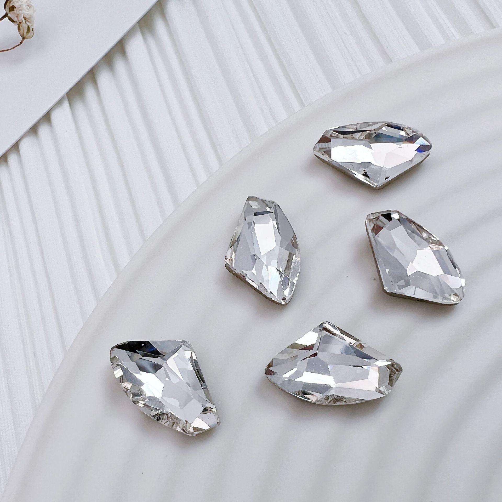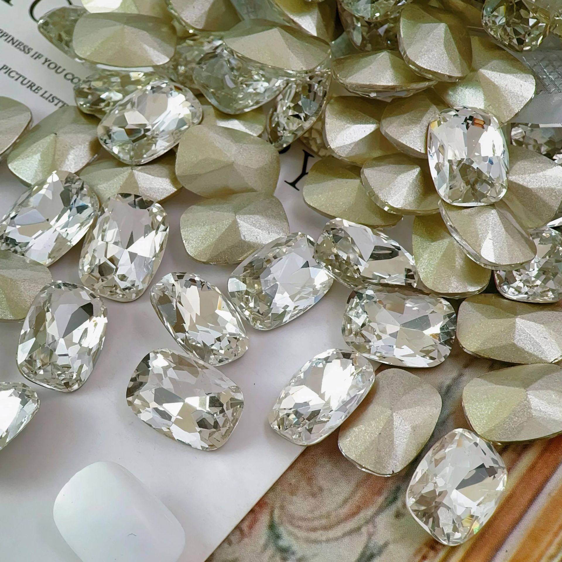 흰색 뾰족한 네일 드릴 울트라 플래시 흰색 직사각형 지방 사각형 비뚤어진 하트 록 캔디 유리 모양의 다이아몬드 네일 쥬얼리