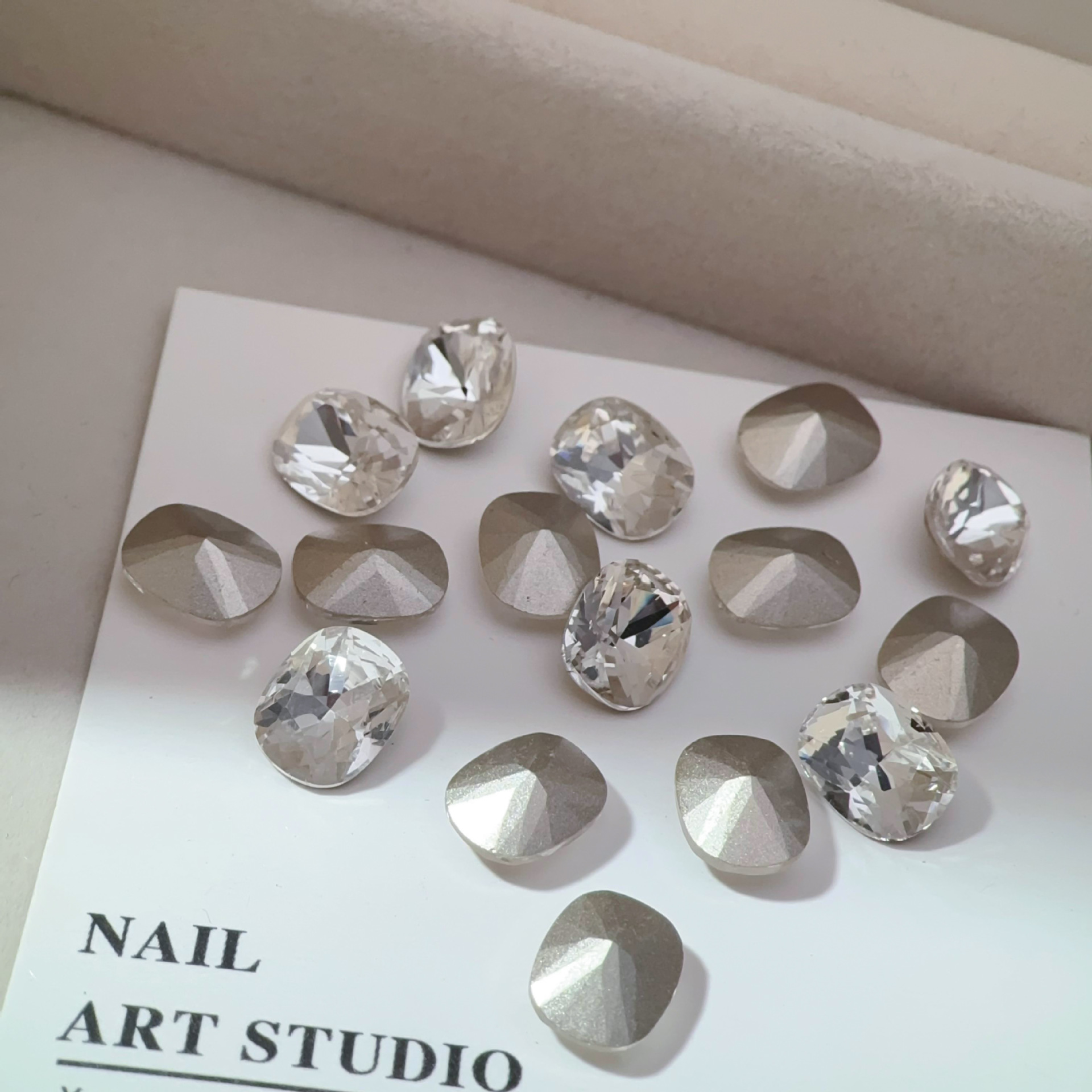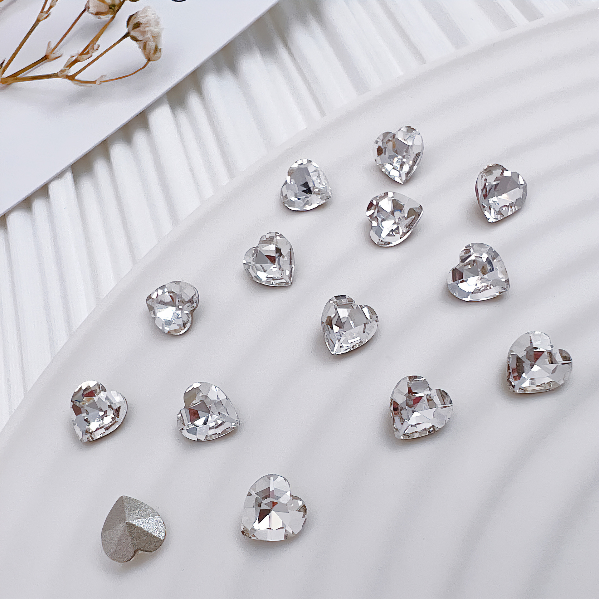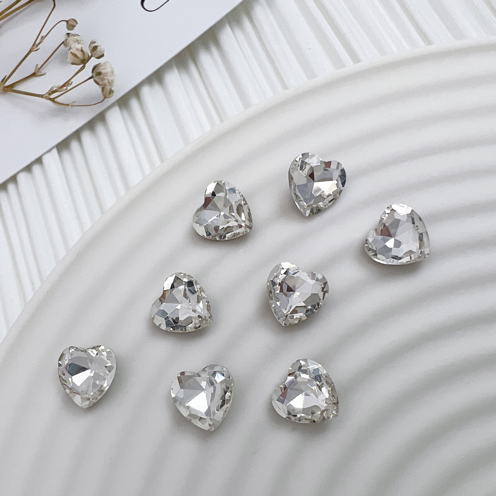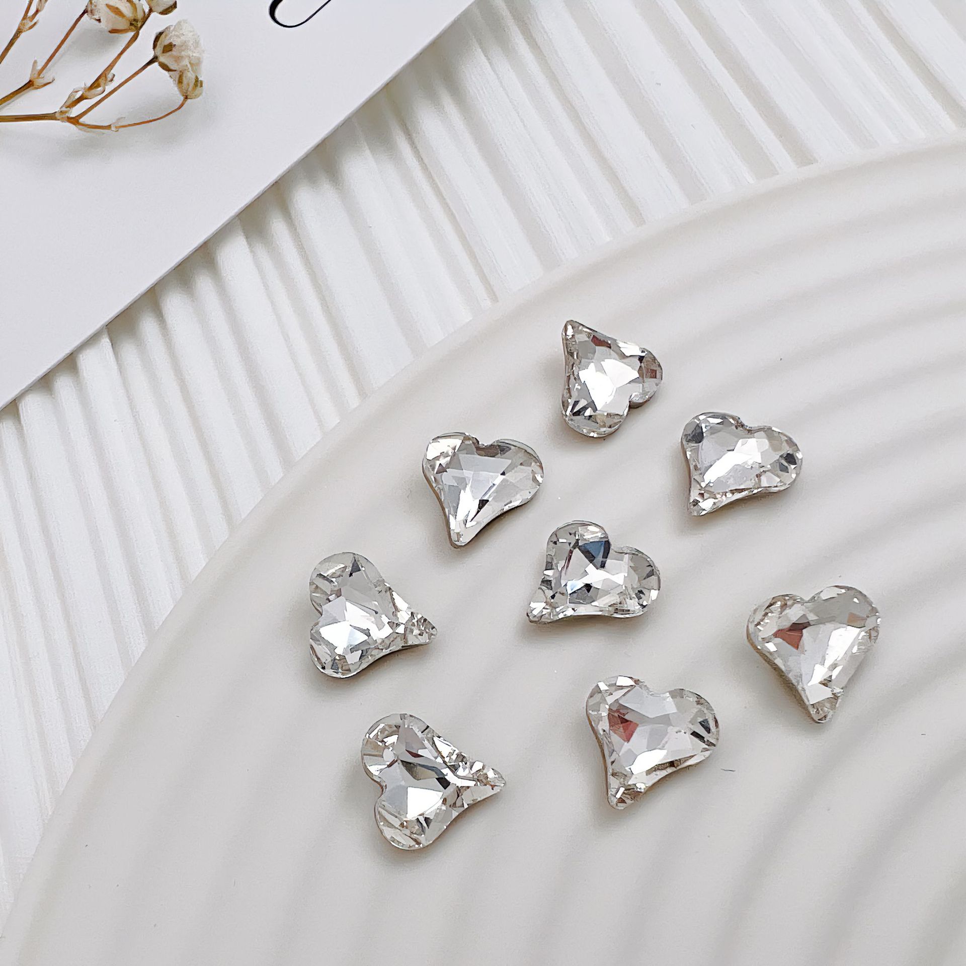 흰색 뾰족한 네일 드릴 울트라 플래시 흰색 직사각형 지방 사각형 비뚤어진 하트 록 캔디 유리 모양의 다이아몬드 네일 쥬얼리
