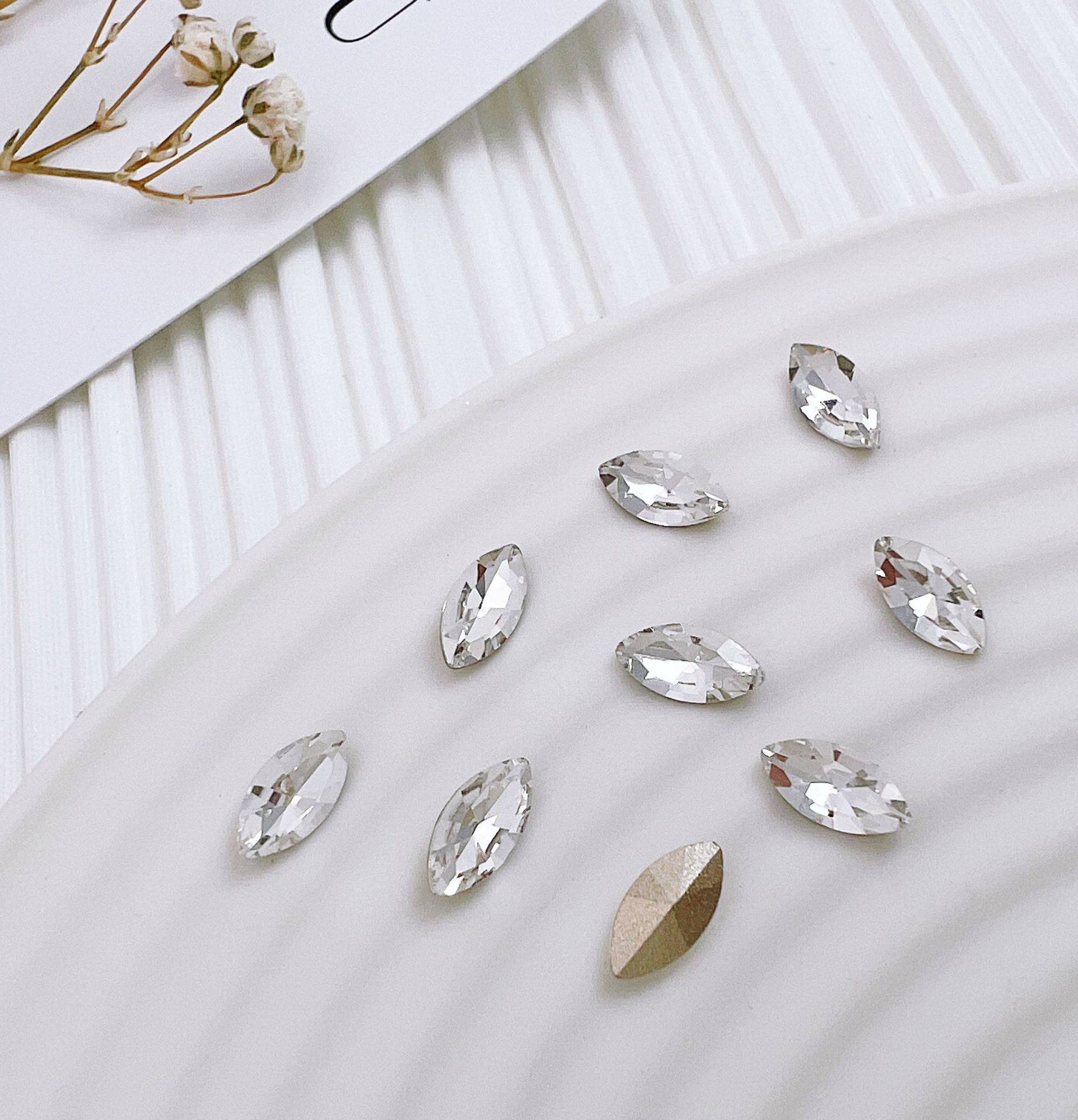 • 반투명 흰색 뾰족한 바닥 다이아몬드 8*12mm 데니어 모양