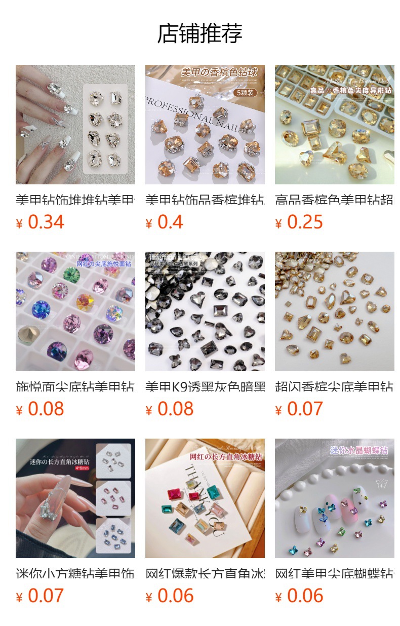흰색 뾰족한 네일 드릴 울트라 플래시 흰색 직사각형 지방 사각형 비뚤어진 하트 록 캔디 유리 모양의 다이아몬드 네일 쥬얼리스토어 가기