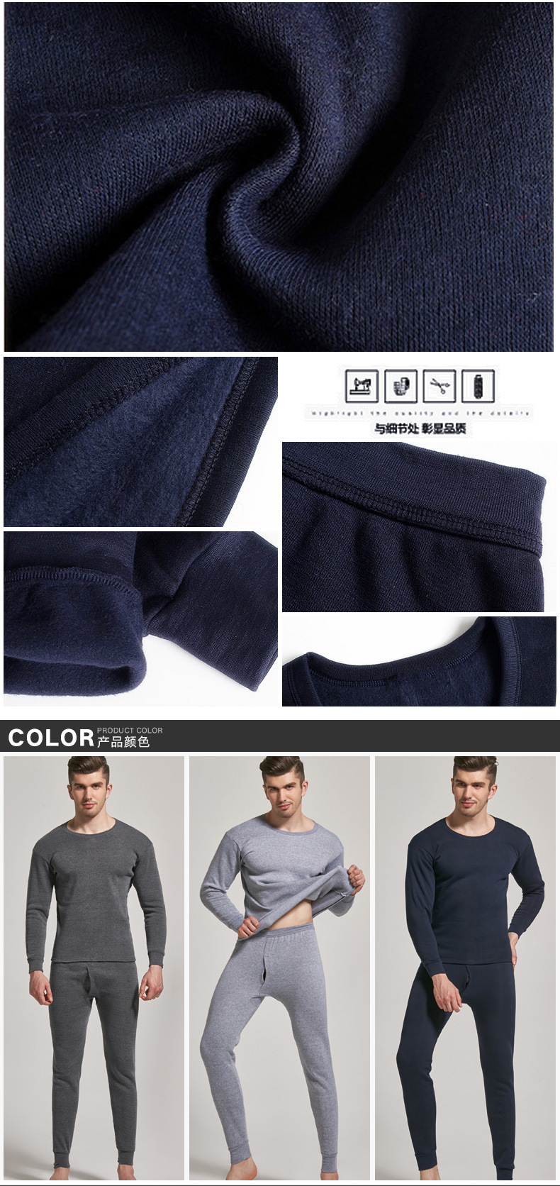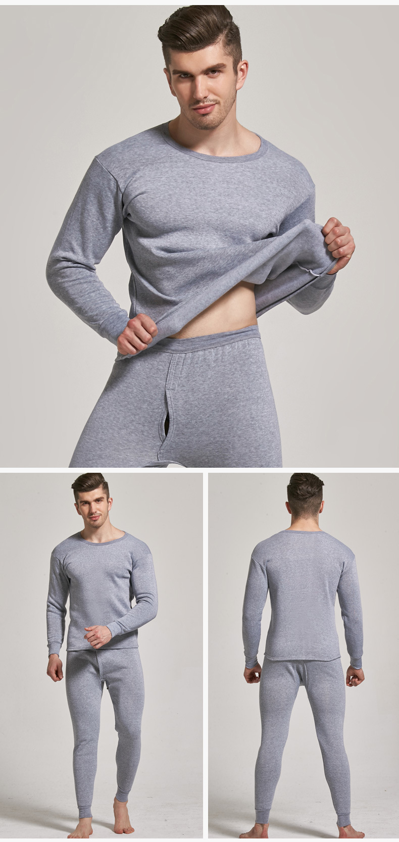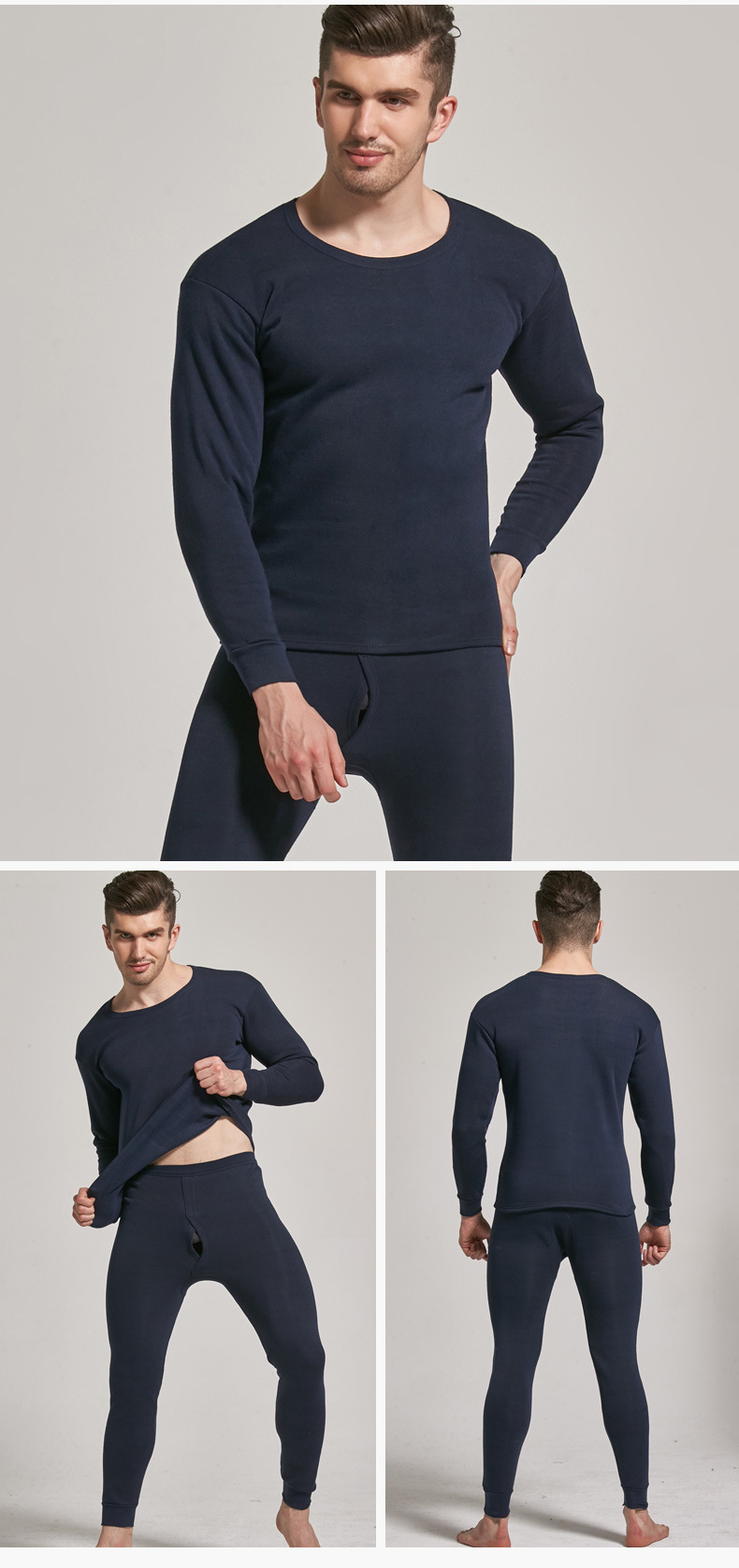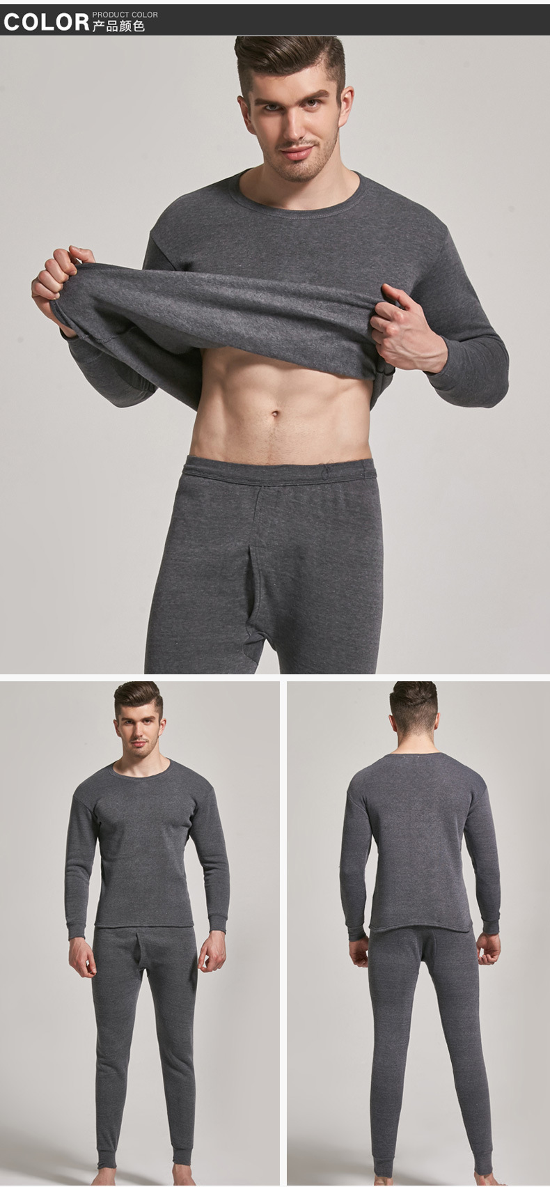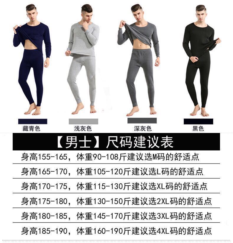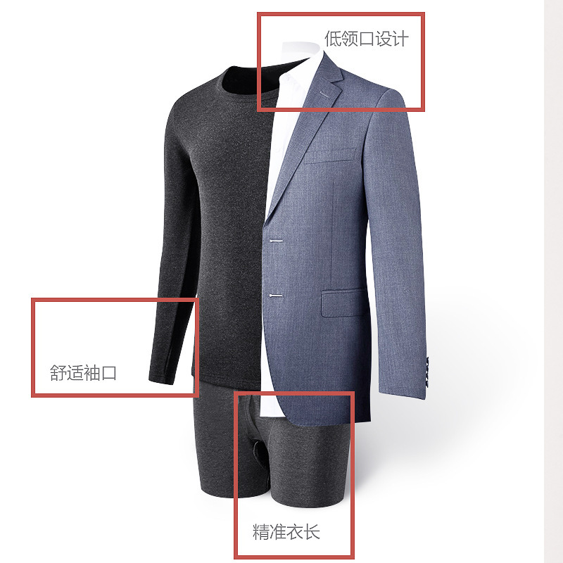 NanRenShuai/Nan Renshuai 남성 단색 열 속옷 라운드 넥 브러시 벨벳 두꺼운 가을 옷과 가을 바지