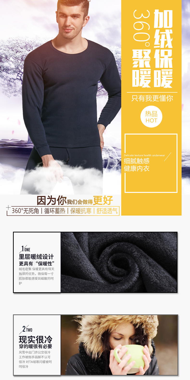 NanRenShuai/Nan Renshuai 남성 단색 열 속옷 라운드 넥 브러시 벨벳 두꺼운 가을 옷과 가을 바지스토어 가기
