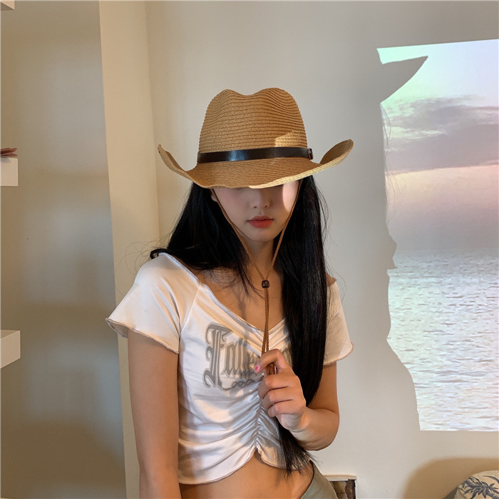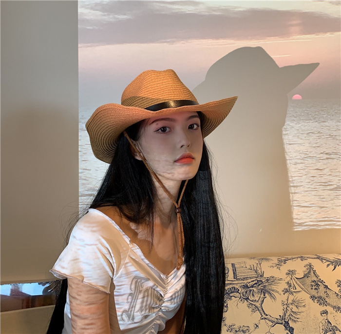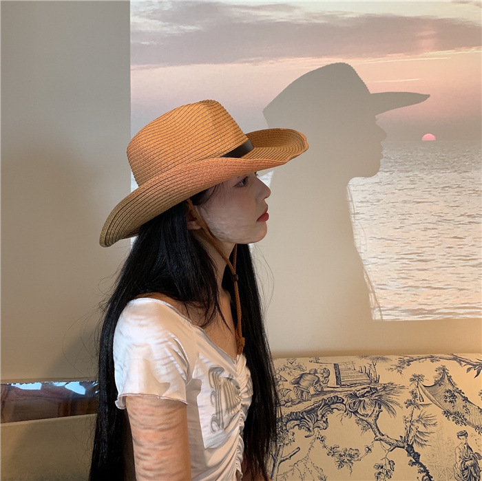 크로스 보더 밀짚 모자 여자의 큰 이브 야외 태양 보호 태양 모자 서양 데님 등산 여행 기사 태양 모자 남성용스토어 가기
