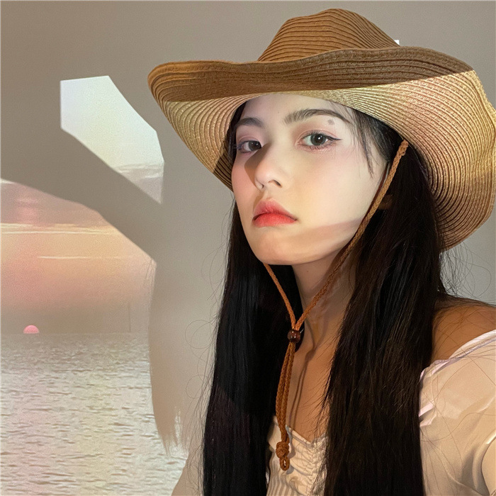 크로스 보더 밀짚 모자 여자의 큰 이브 야외 태양 보호 태양 모자 서양 데님 등산 여행 기사 태양 모자 남성용