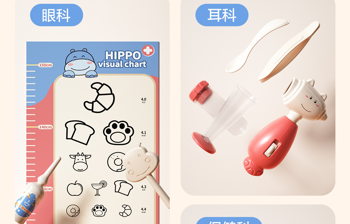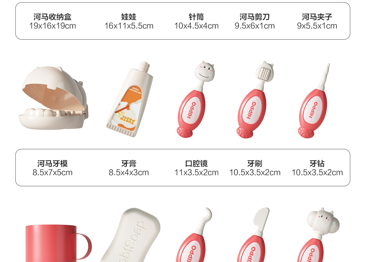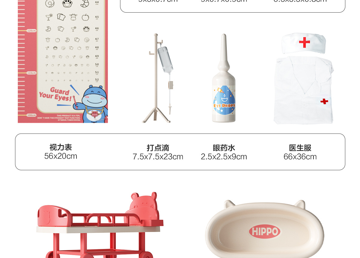 河马听诊器、温度计、手电筒、探耳:各含2粒AG10纽扣电池
