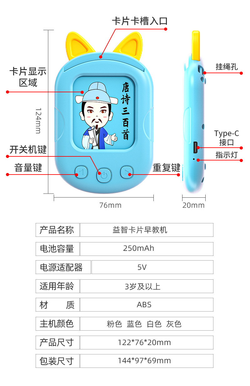 어린이 3 백 탕시 카드 삽입 기계 고대시 학습 기계 충전 카드 기계 계몽주의 퍼즐 조기 교육 기계