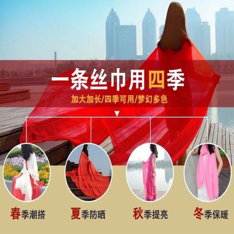 빅 레드 대형 쉬폰 단색 실크 스카프 봄과 여름 해변 자외선 차단제 스카프 모든 매치 대형 숄 댄스 파티 스카프스토어 가기