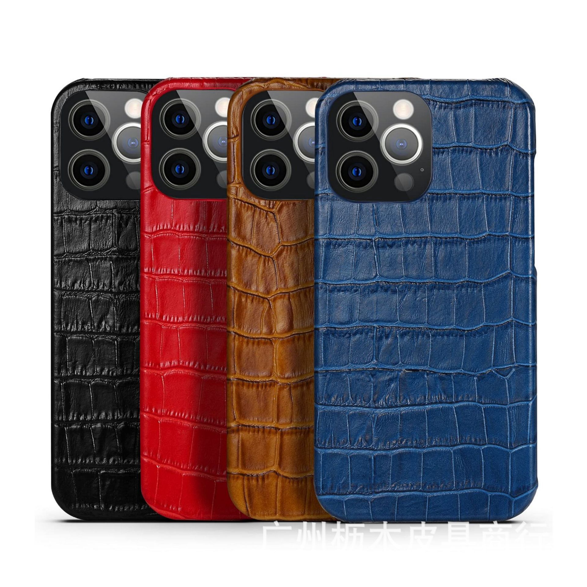 해외 무역 악어 패턴 iPhone 1314 플러스 비즈니스 남성 및 여성용 휴대 전화 낙하 방지 가죽 케이스 용 정품 가죽 전화 케이스