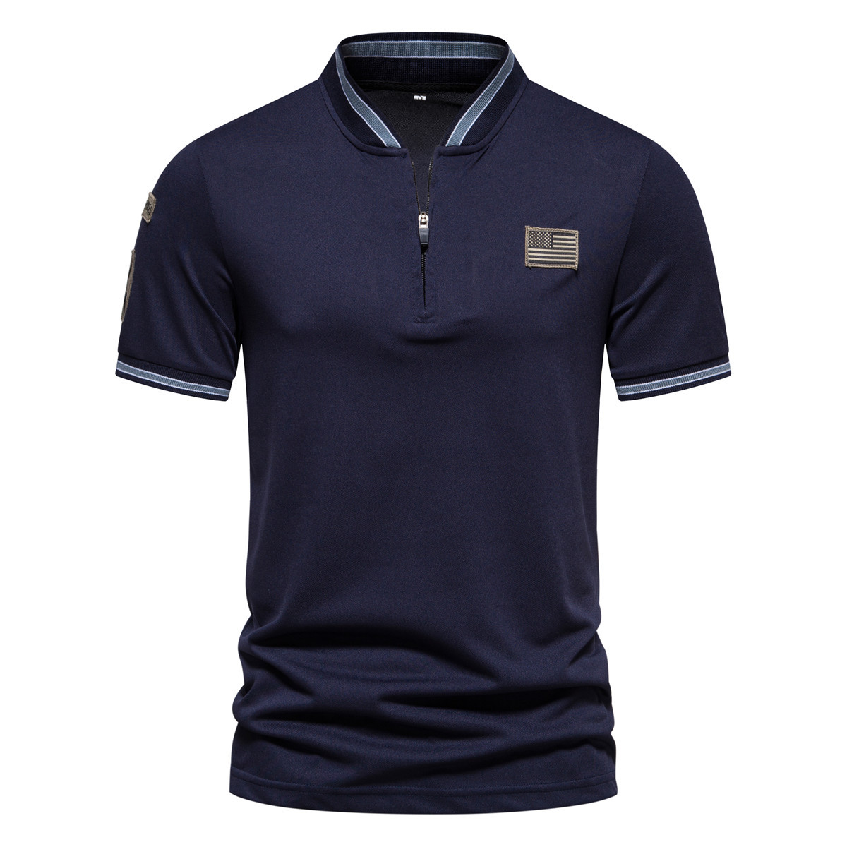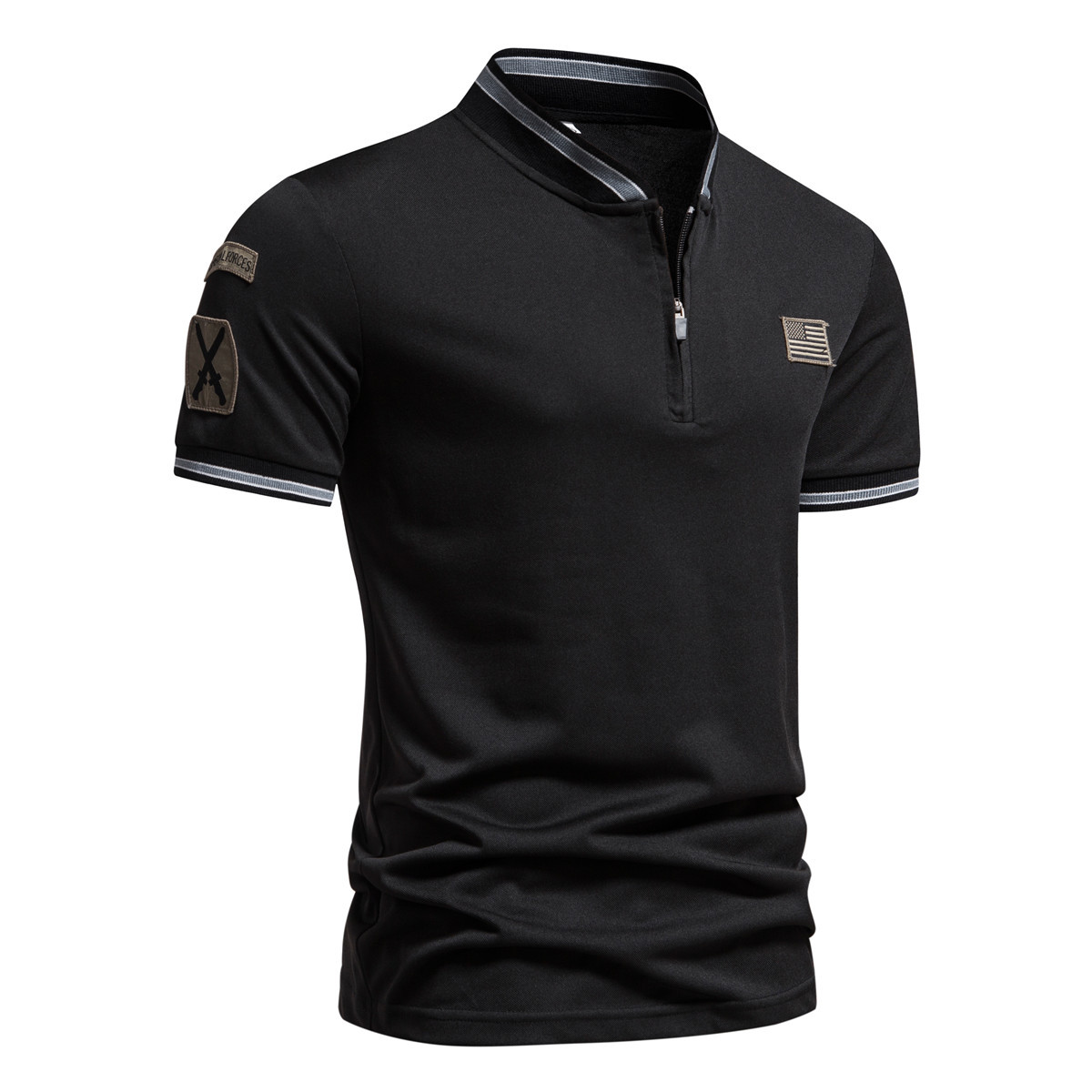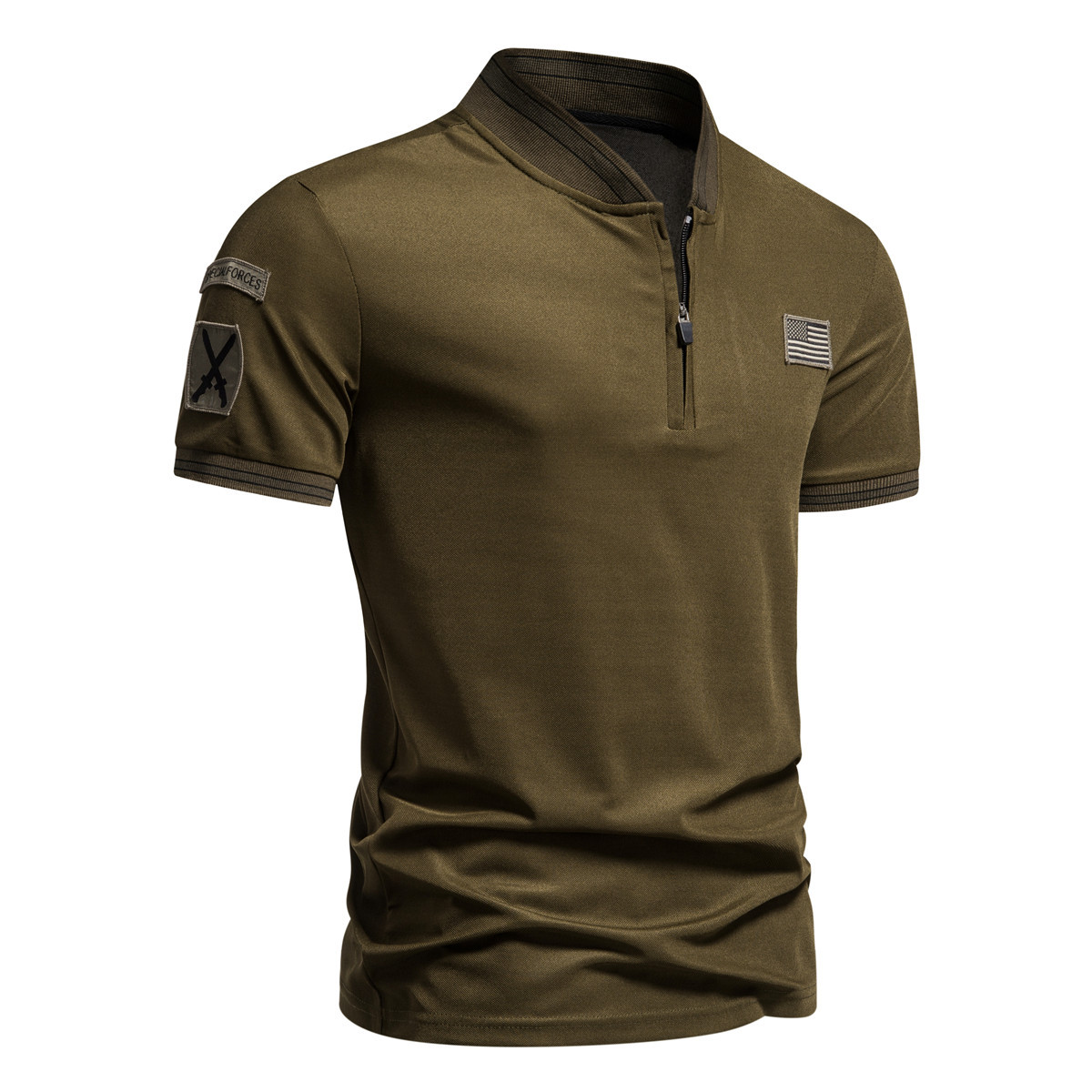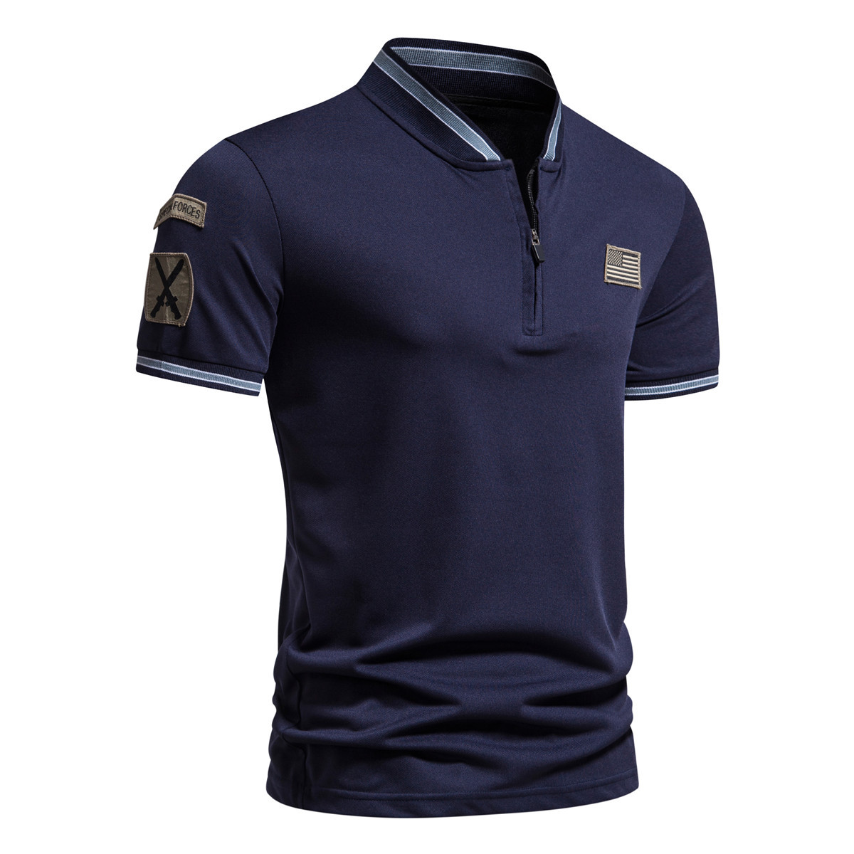 2025 여름 신작 남성 티셔츠 스탠드 칼라 미국 공군 라벨 대형 티셔츠 헨리 칼라 남성용 반팔 티셔츠