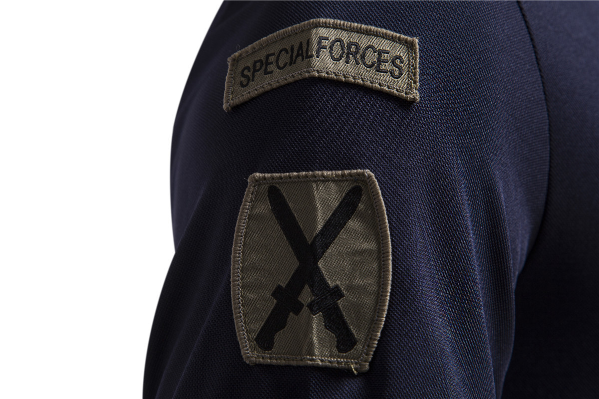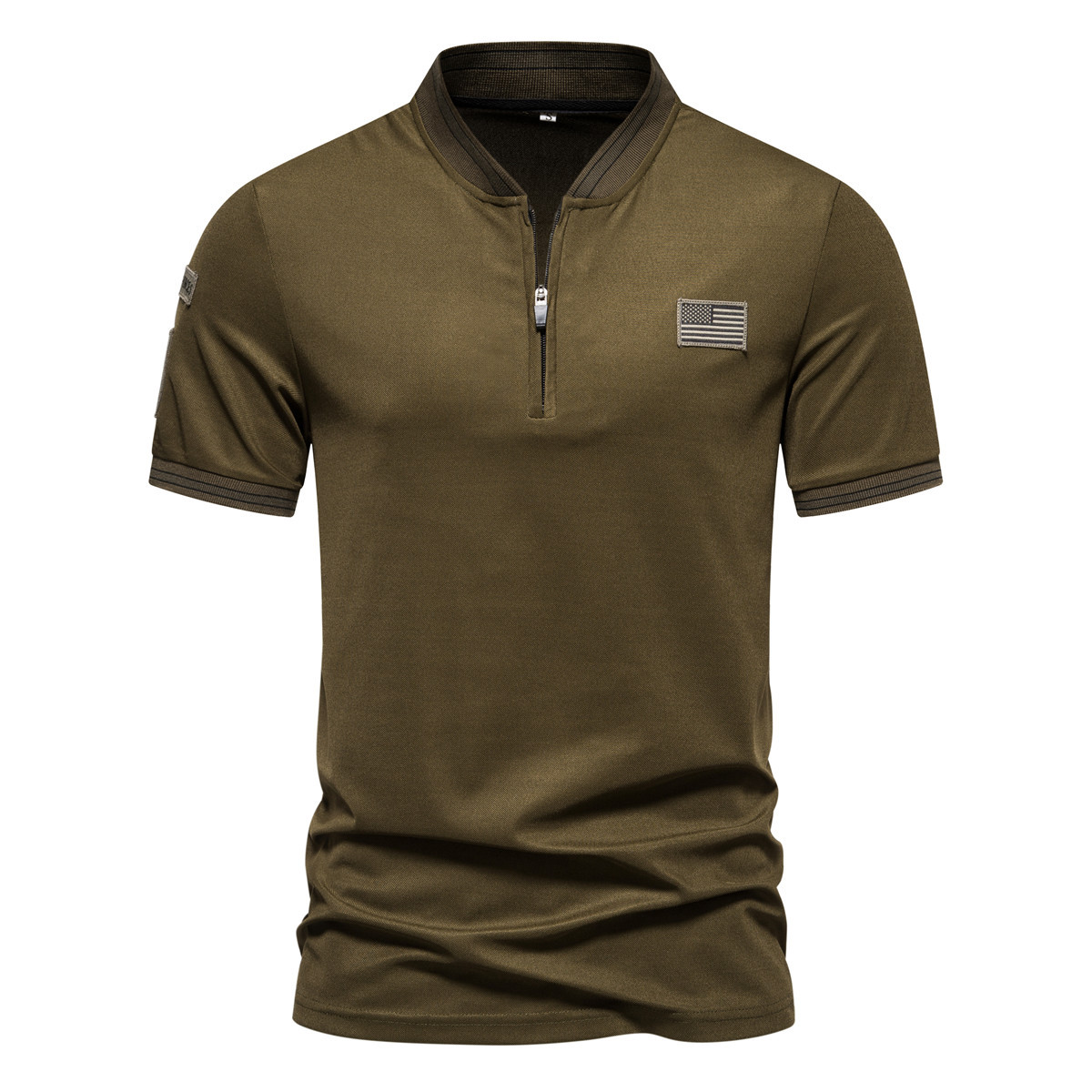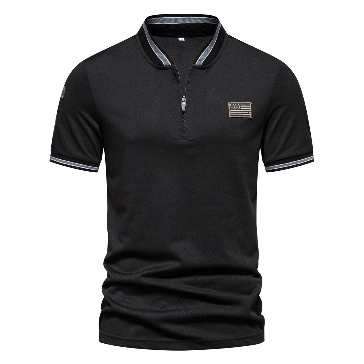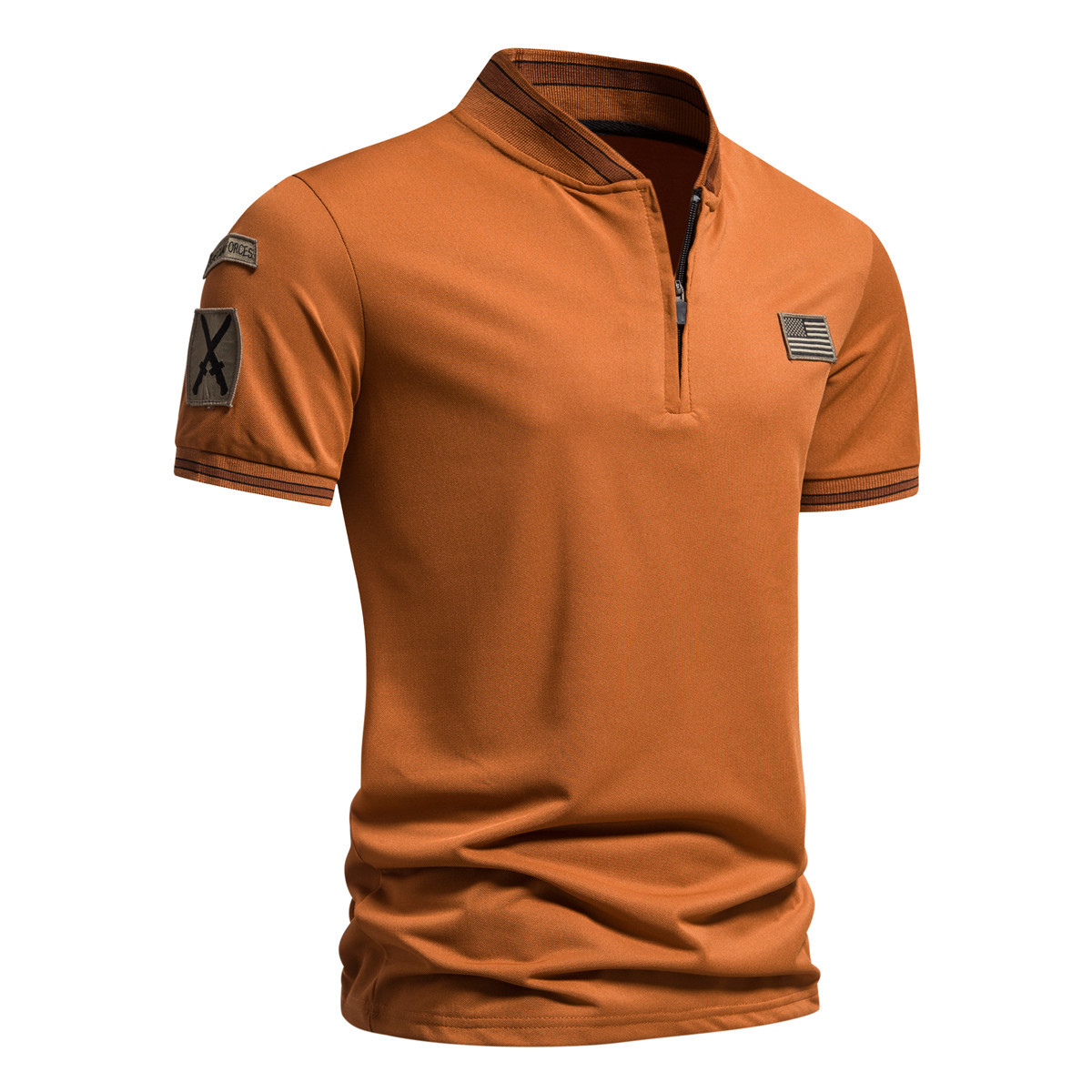 2025 여름 신작 남성 티셔츠 스탠드 칼라 미국 공군 라벨 대형 티셔츠 헨리 칼라 남성용 반팔 티셔츠
