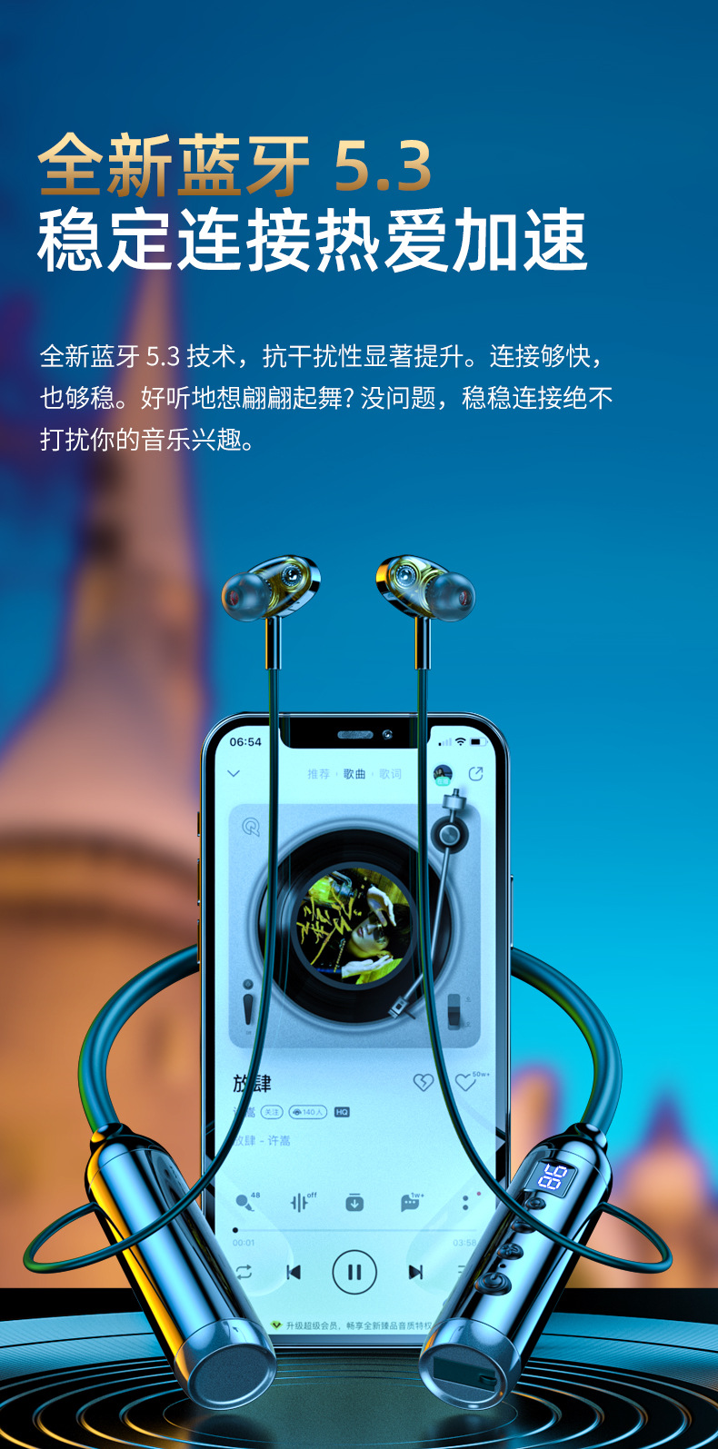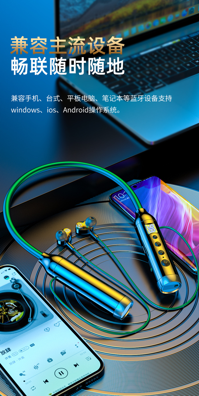 Android Huawei를 위한 새로운 2023 목 걸이 무선 블루투스 헤드셋 소음 감소 스포츠 방수 및 땀 방지
