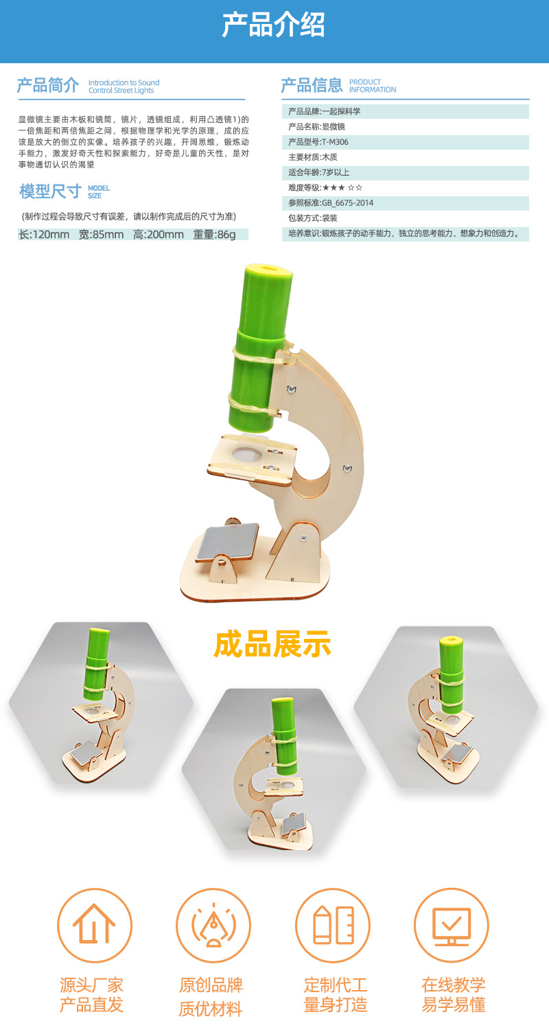 과학 실험 자체 제작 현미경 어린이 손 조립 물리 실험 재료 패키지 과학 기술 소형 만들기 장난감스토어 가기