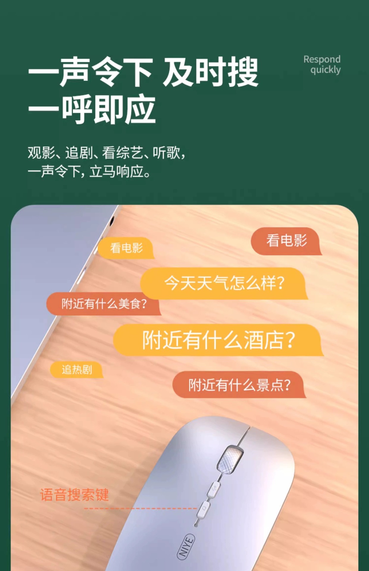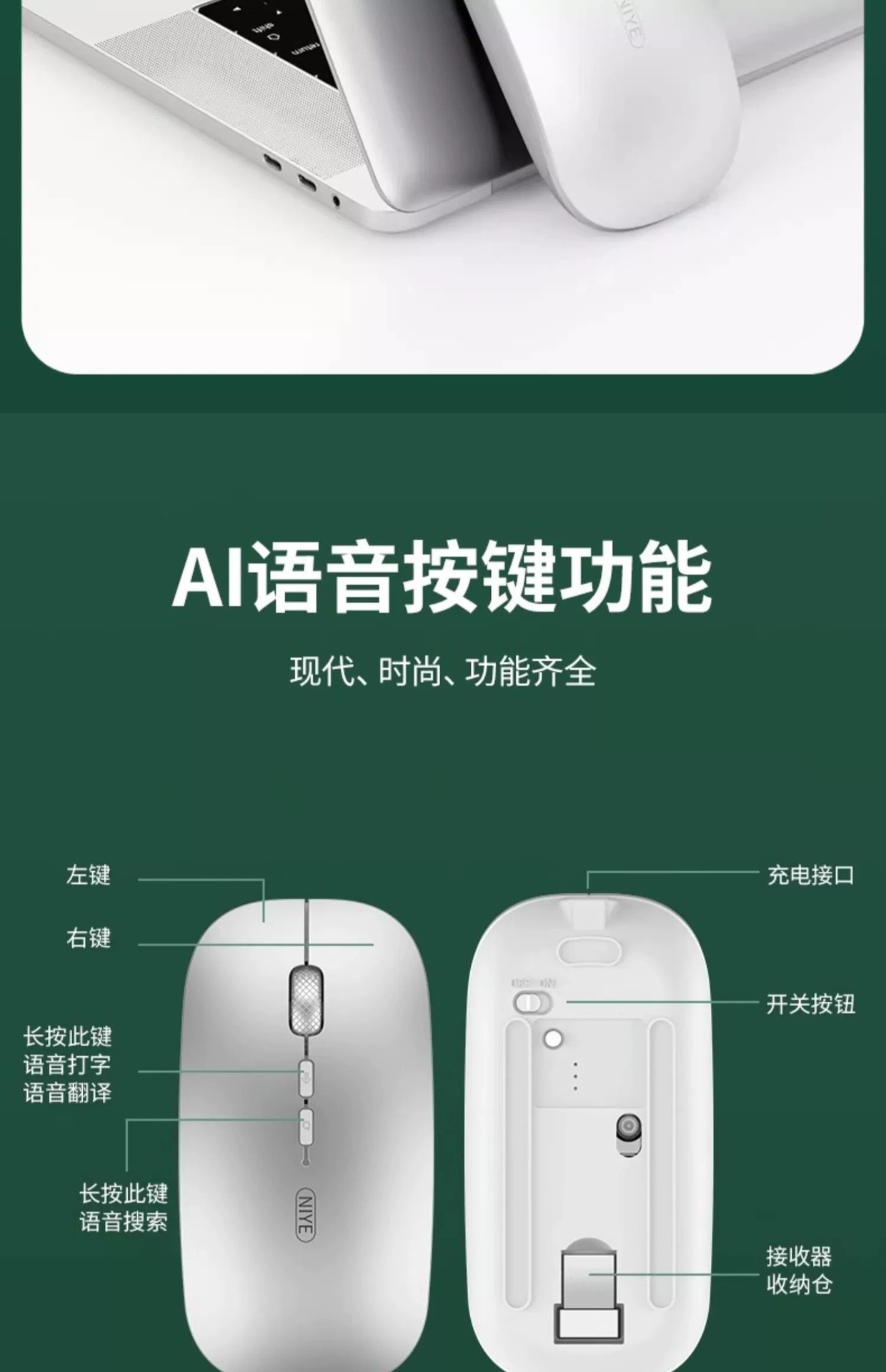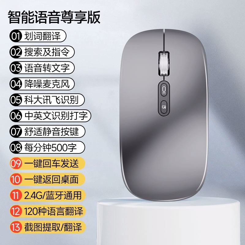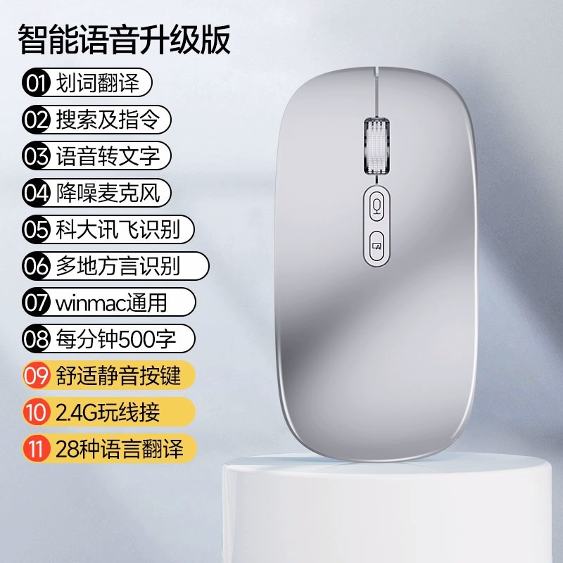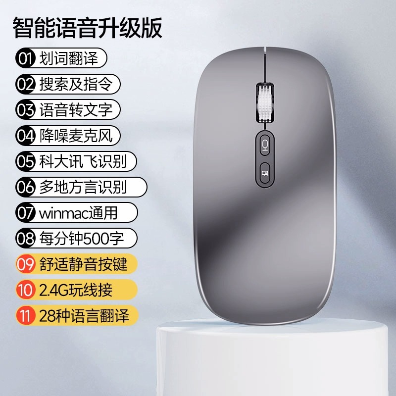 AI 지능형 음성 무선 블루투스 마우스 음성 제어 입력 텍스트 번역 충전 USB 컴퓨터 연결 국경 간스토어 가기