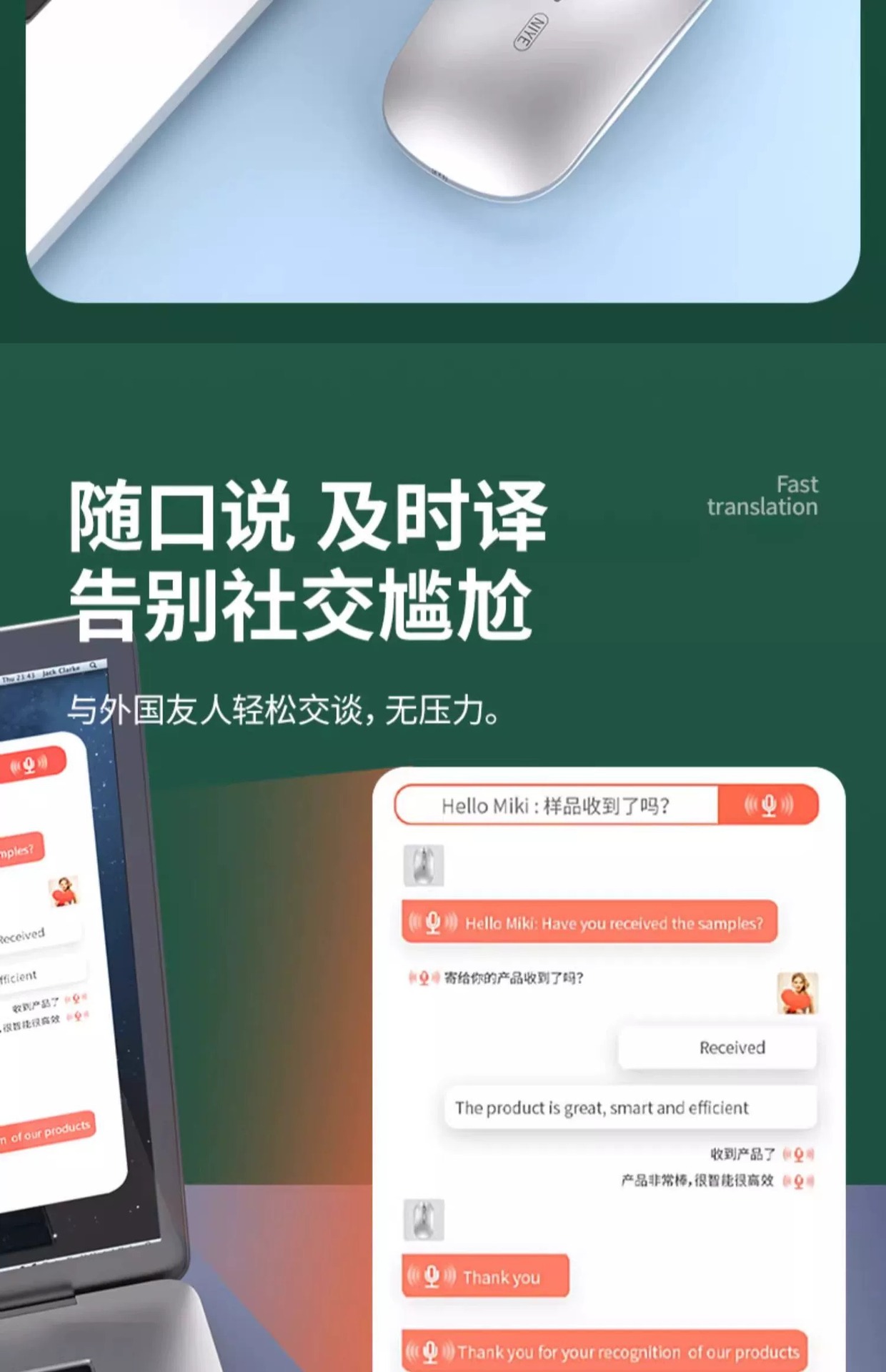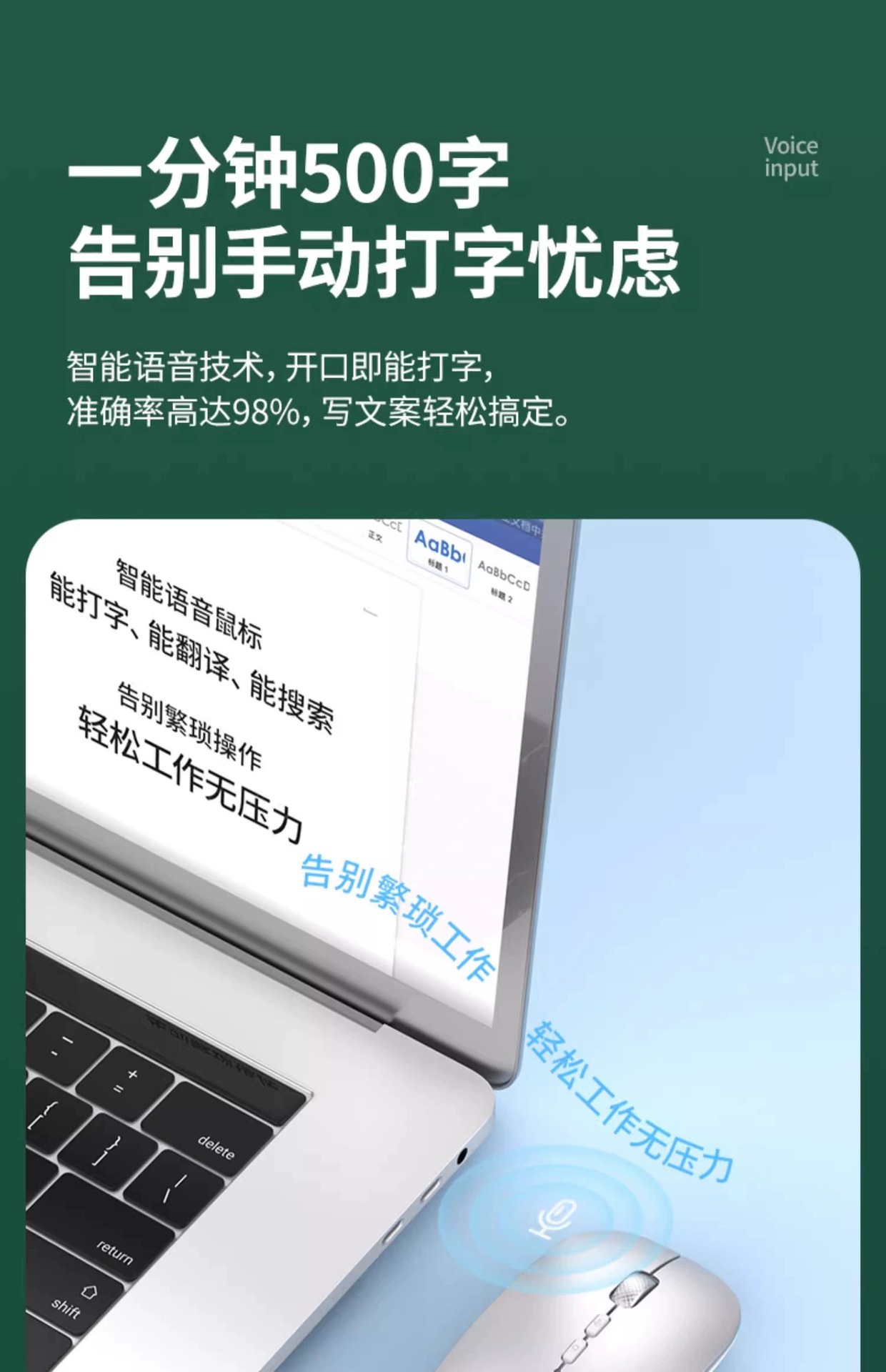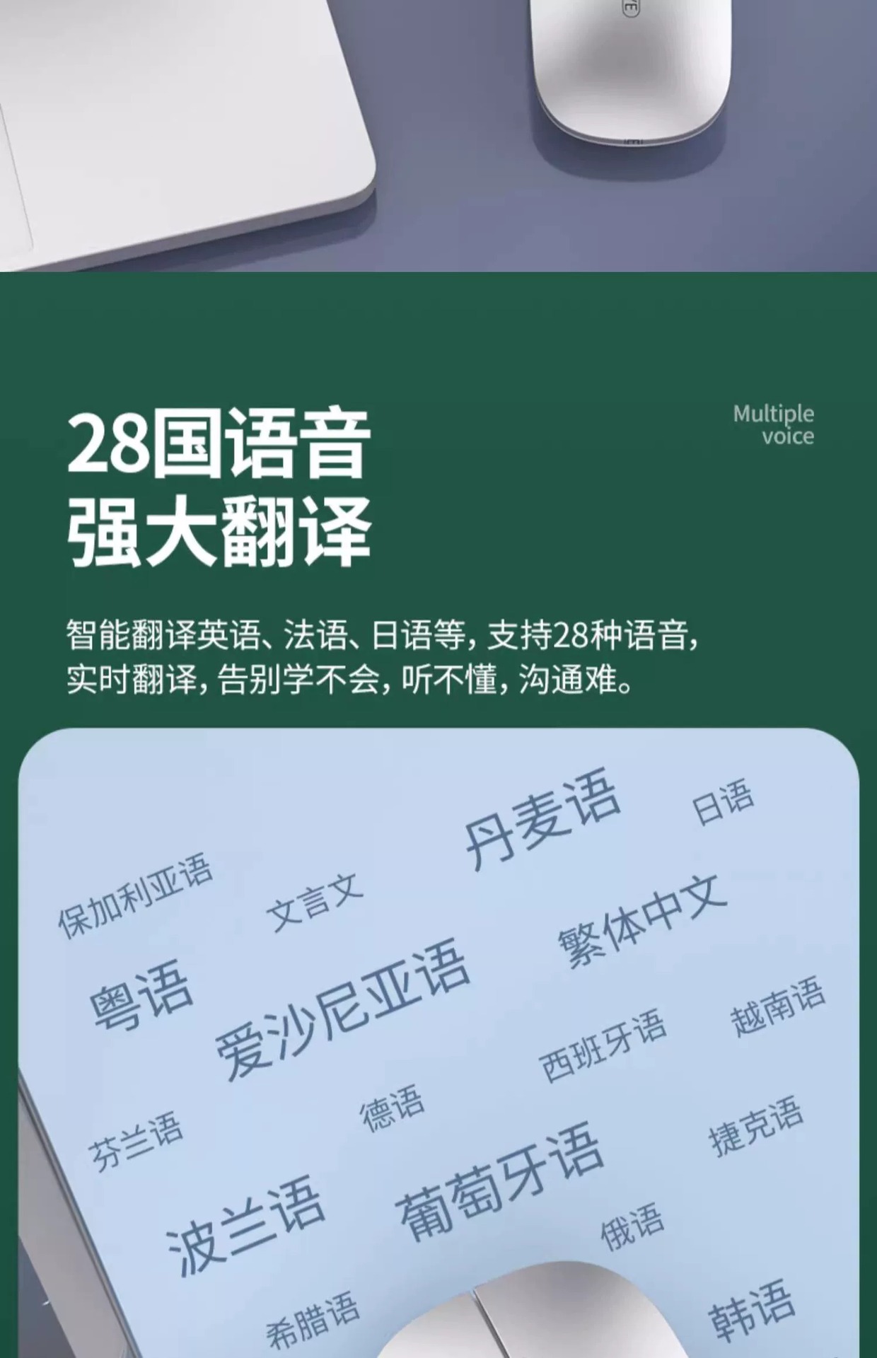 AI 지능형 음성 무선 블루투스 마우스 음성 제어 입력 텍스트 번역 충전 USB 컴퓨터 연결 국경 간