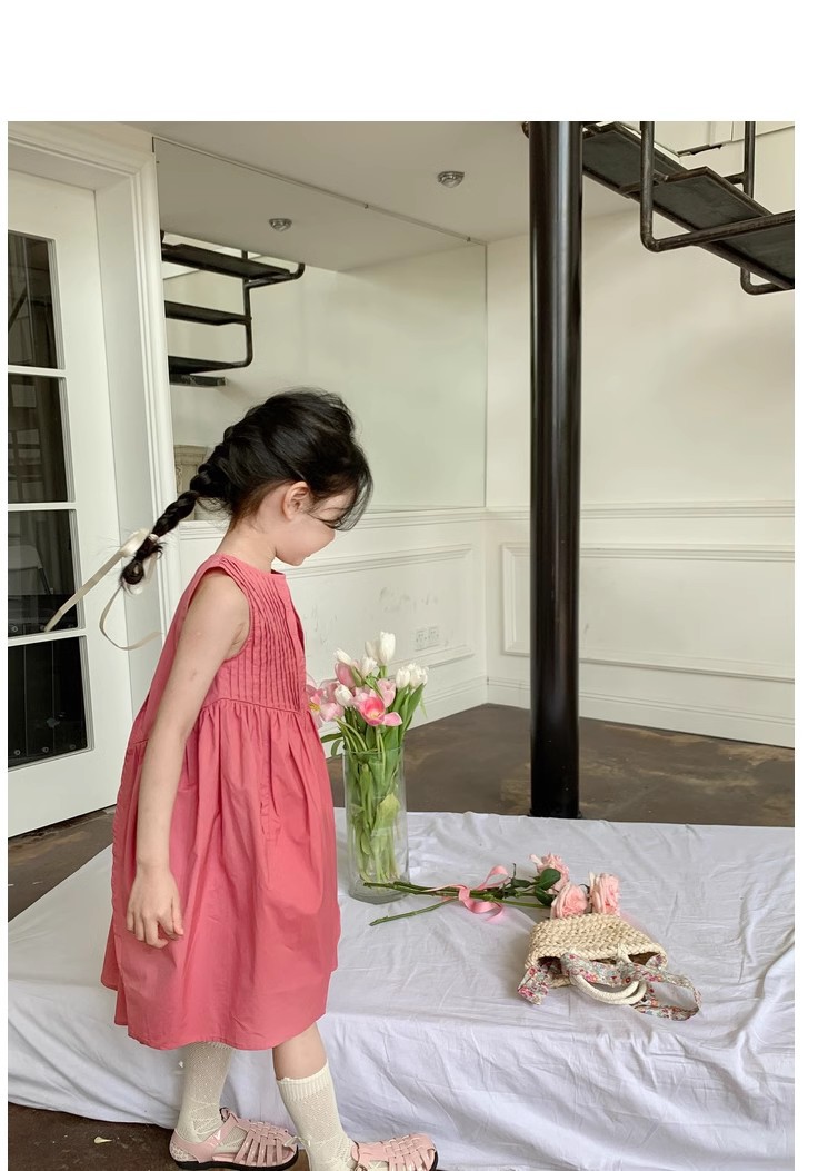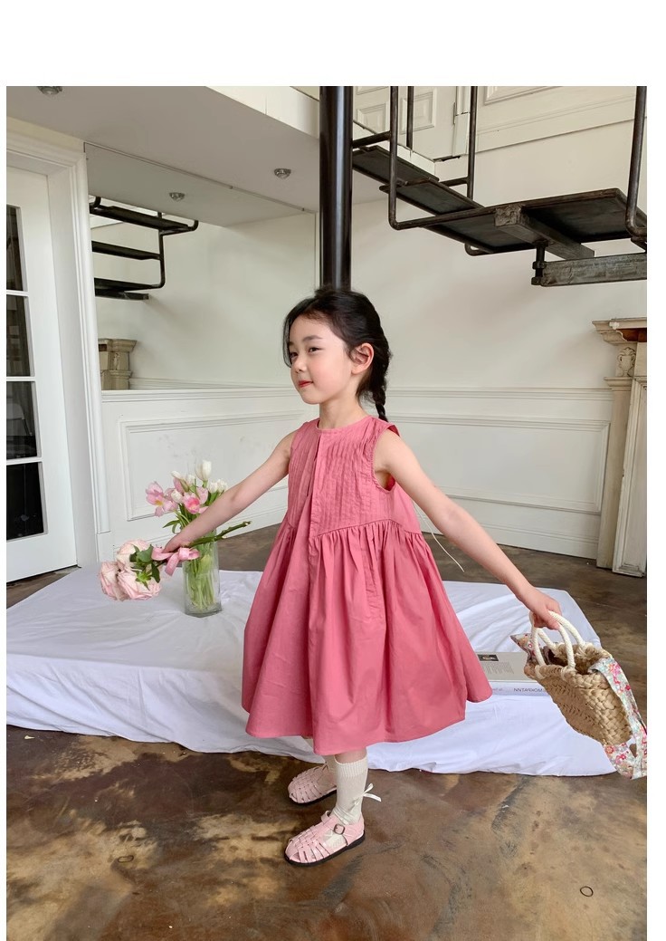 여아 스커트 달콤한 주름 민소매 원피스 여름 신상품 수출 아동복 3-8세
