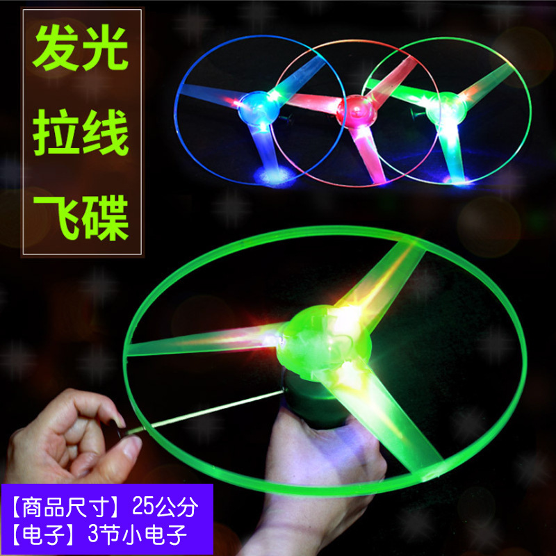 Post-80s 향수를 불러 일으키는 클래식 어린이 발광 드로우 스트링 비행 접시 장난감 소년 학생 회전 손 당겨 프리스비 당겨 와이어 비행 하늘