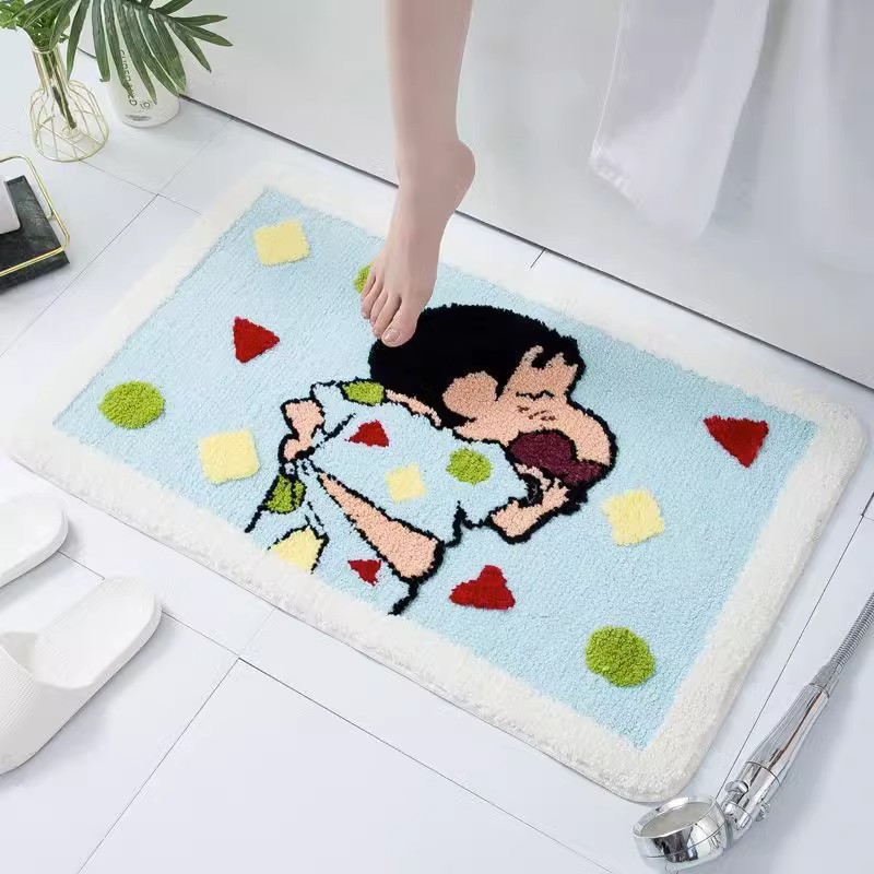 크로스 보더 만화 외계인 캐시미어 매트 크레용 작은 새 카펫 어린이 방 장식 매트 욕실 흡수성 발 매트스토어 가기