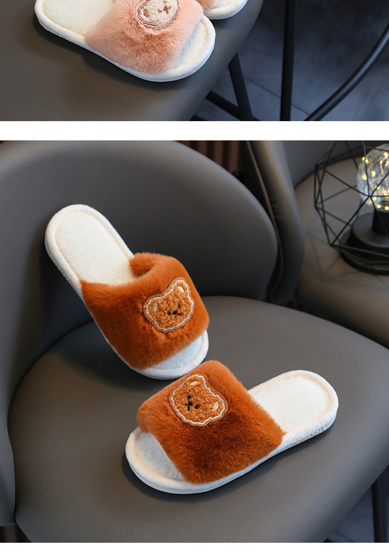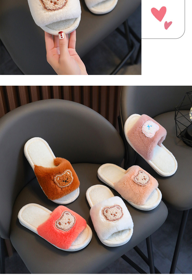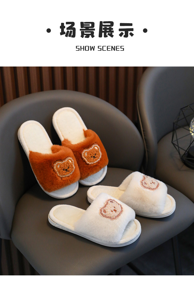 2023 남성과 여성을위한 어린이 면화 신발 실내 캐주얼 만화 곰 귀여운 미끄럼 방지 편안한 두꺼운 밑창 모피 면화 슬리퍼