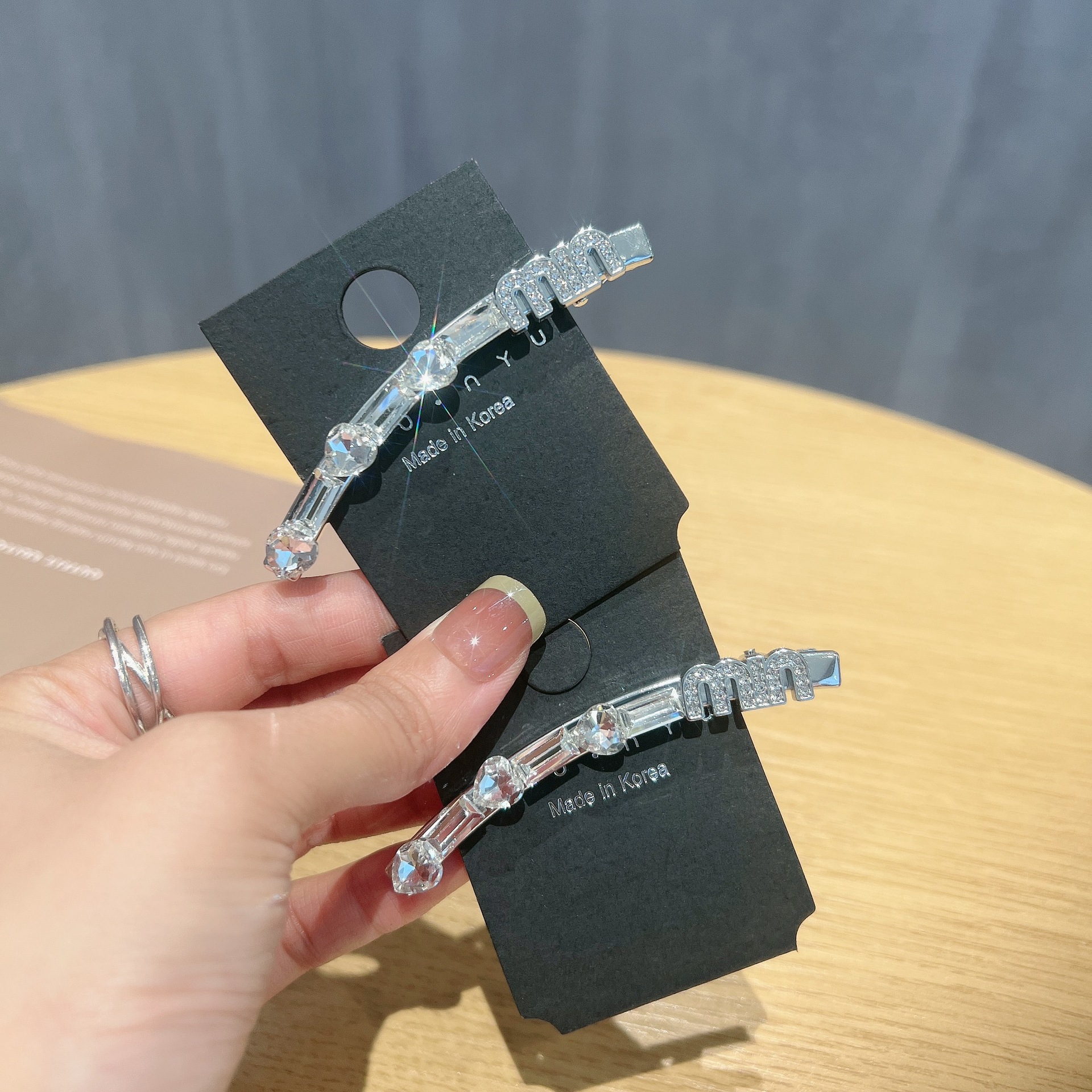 한국 패션 모조 다이아몬드 편지 사랑 헤어 클립 사랑 앞머리 클립 다시 머리 한 단어 오리 빌 클립 머리핀 헤어 액세서리스토어 가기