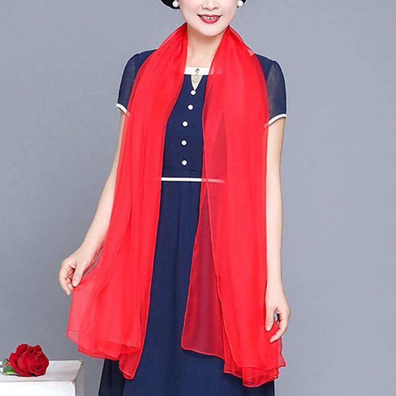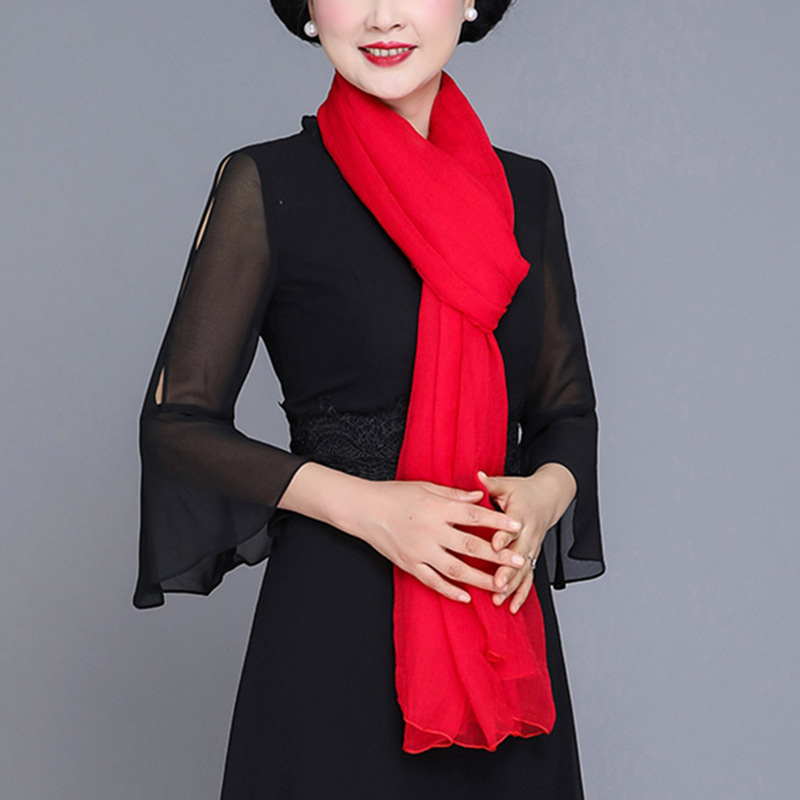 여름 단색 스카프 빨간 스카프 얇은 쉬폰 긴 스카프 여자의 스퀘어 댄스 댄스 스카프 새로운 스타일스토어 가기