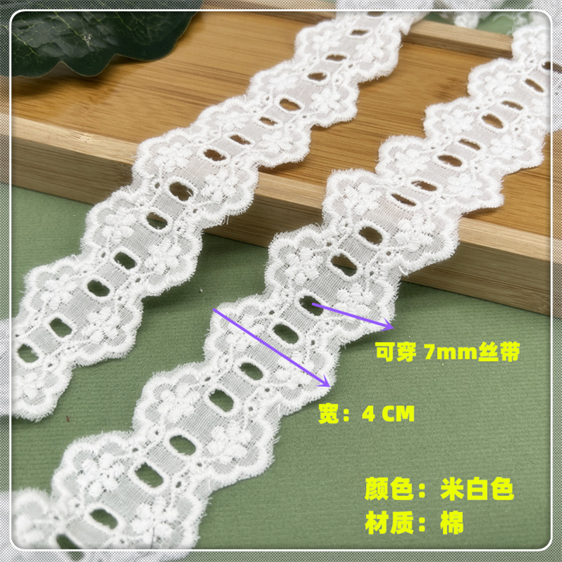 4cm 면 천 가장자리 중공 착용 리본 면 자수 레이스 아동복 로리타 원피스 축제 패브릭 레이스스토어 가기