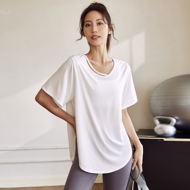 여름 얇은 요가웨어 슬리밍 속건 탑 야외 아침 실행 느슨한 외부 엉덩이 덮음 티셔츠 여성 트레이닝 피트니스웨어스토어 가기
