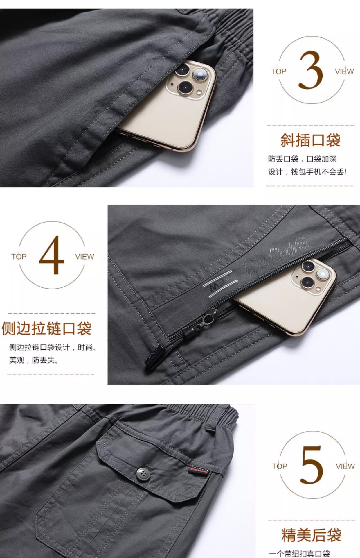툴링 반바지 남성용 여름 새로운 유행 캐주얼 바지 느슨한 면 단색 얇은 지퍼 포켓 7 점 바지스토어 가기