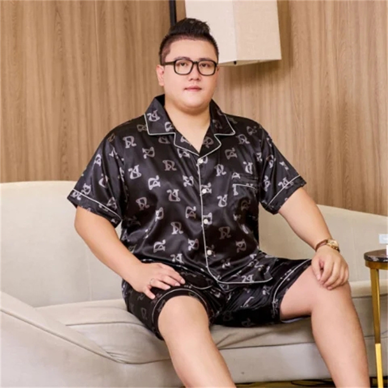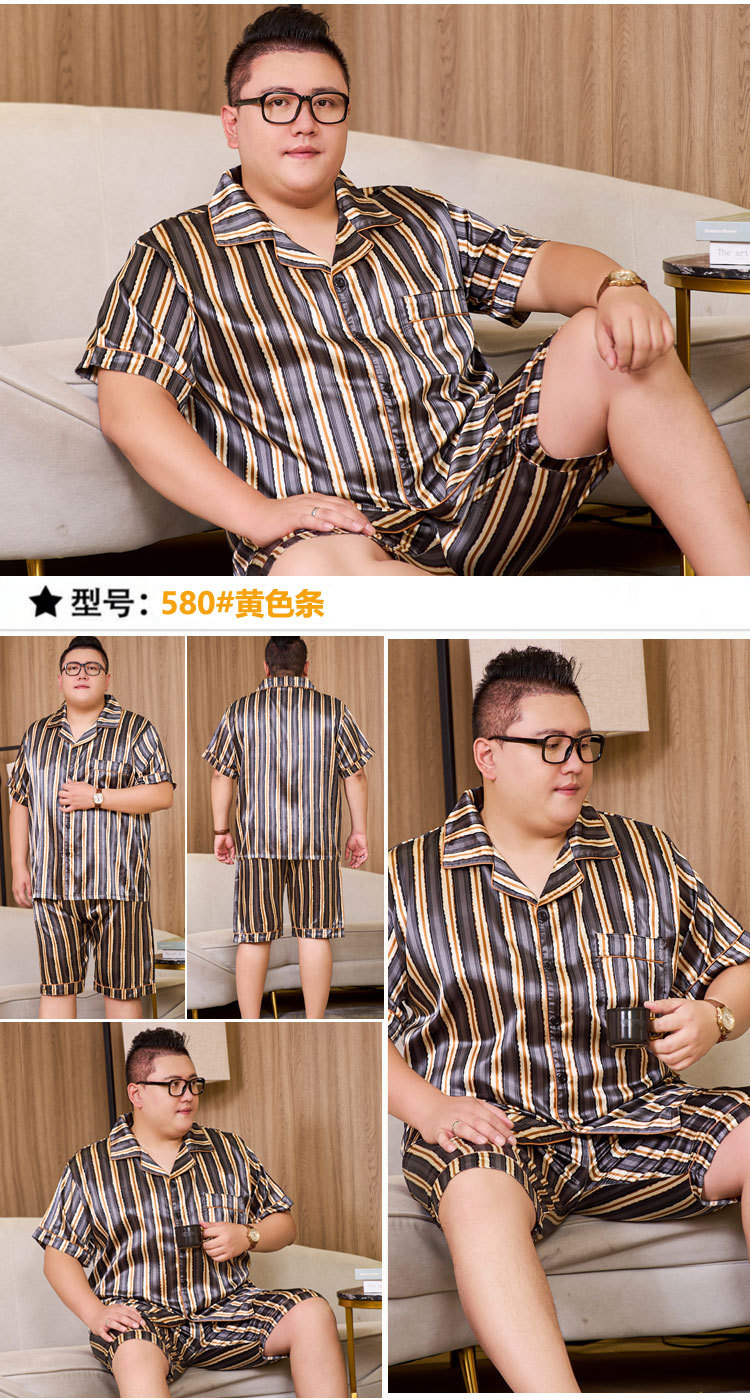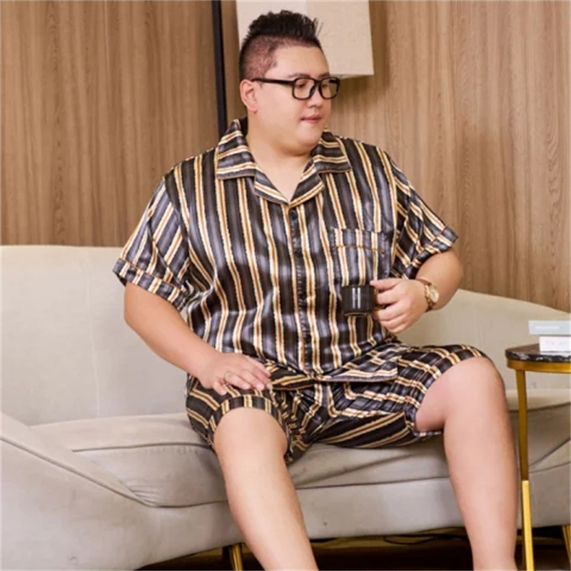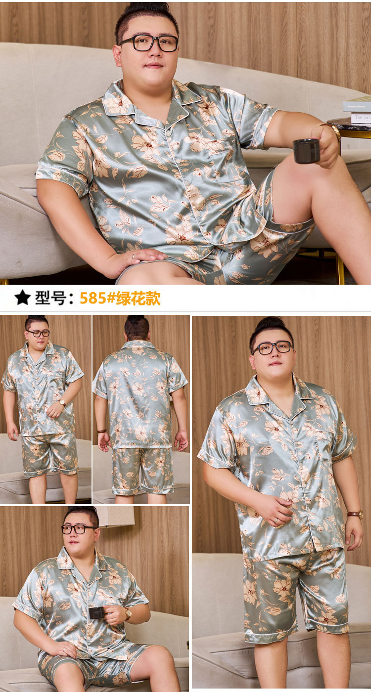 뚱뚱한 남자 330kg 남자의 반팔 아이스 실크 잠옷 세트 여름 새로운 플러스 지방 증가 느슨한 남자의 가정 옷스토어 가기