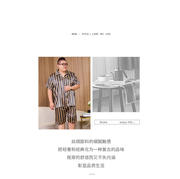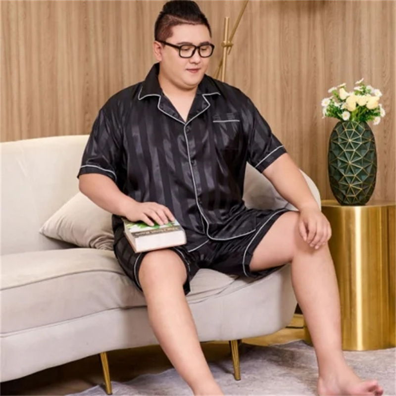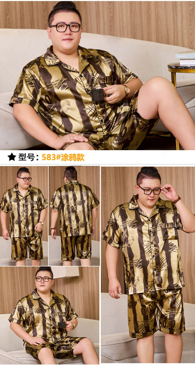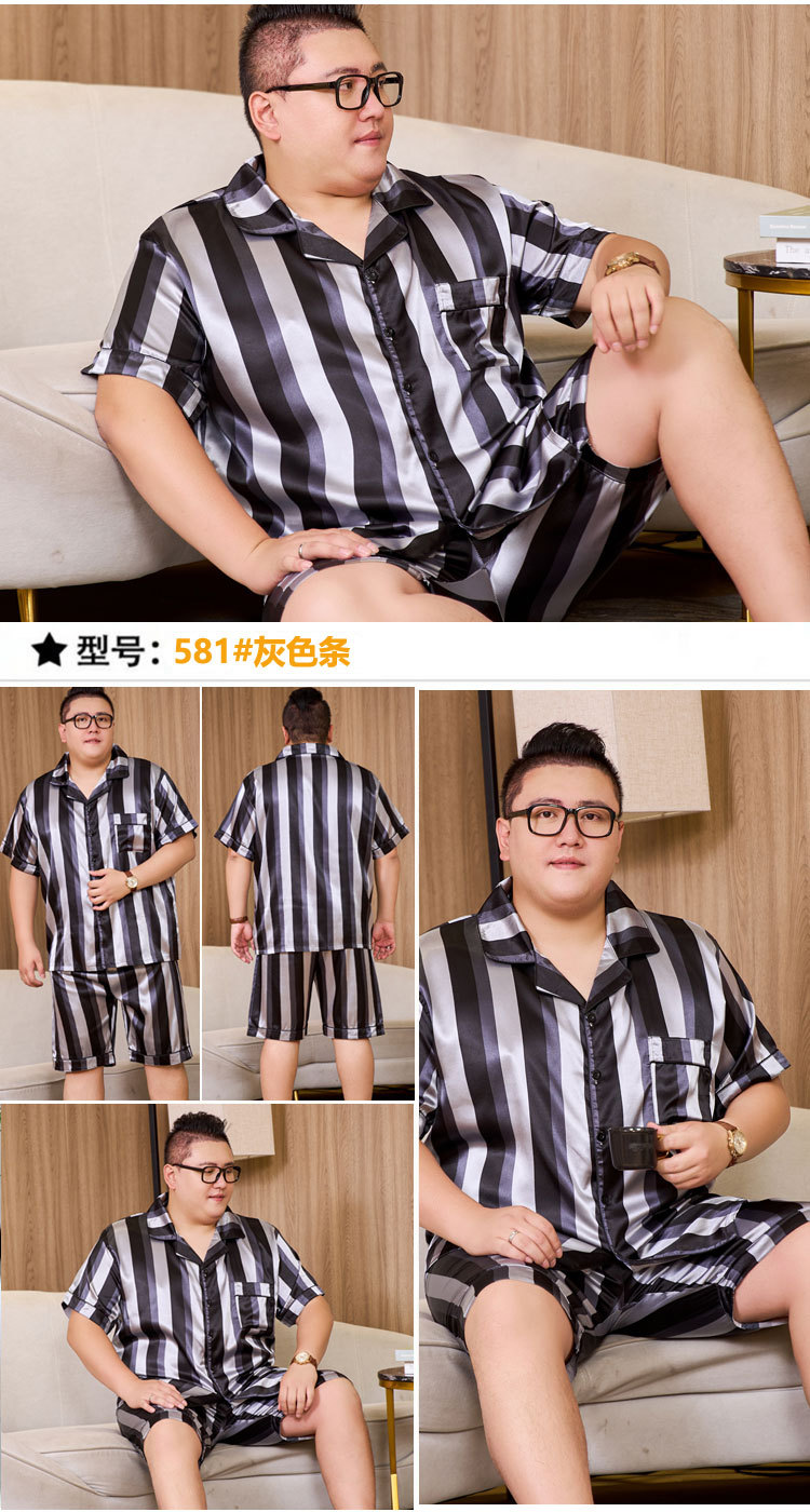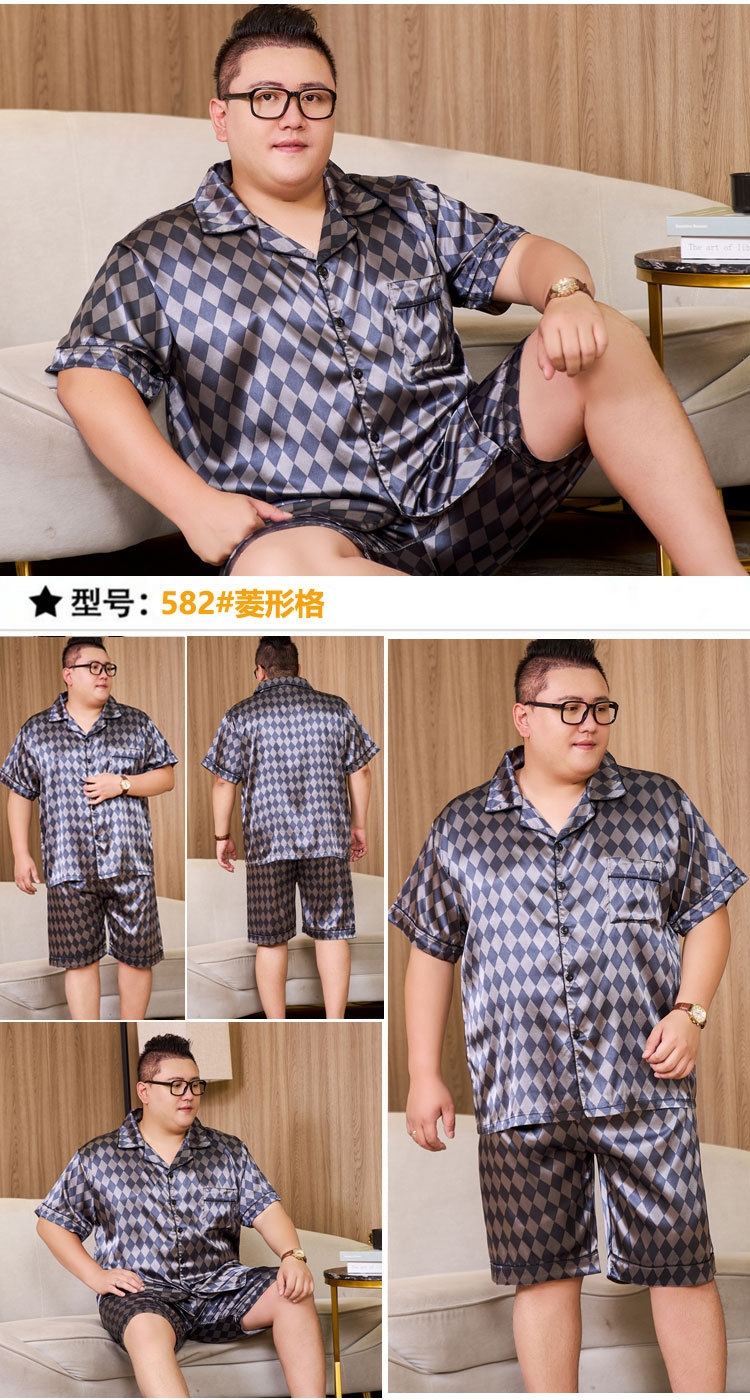 뚱뚱한 남자 330kg 남자의 반팔 아이스 실크 잠옷 세트 여름 새로운 플러스 지방 증가 느슨한 남자의 가정 옷스토어 가기