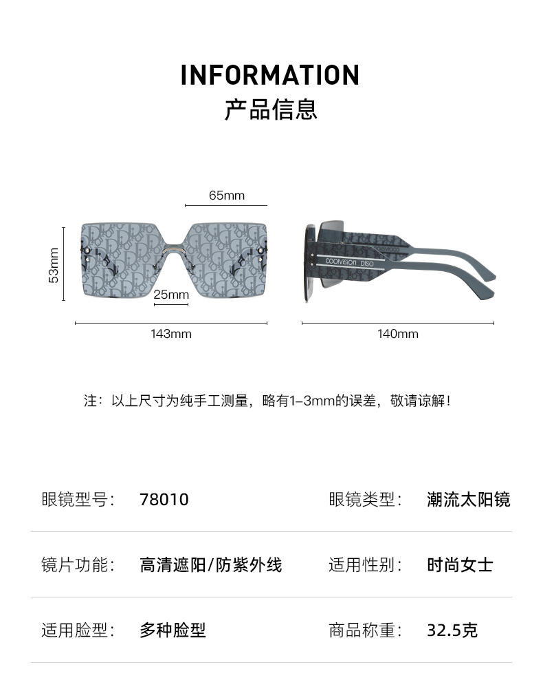 2025년 신상 D 브랜드 무테 커팅 엣지 패셔너블 선글라스 여성용 유럽 및 미국 스타일 ins 고급 사각 프레임 여성용 선글라스스토어 가기