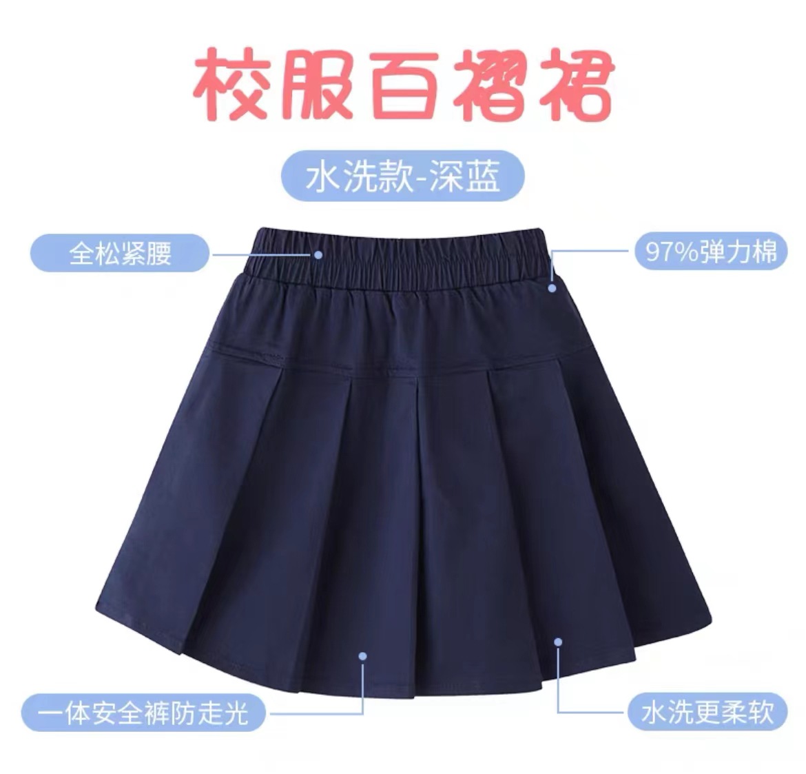 여아 순면 플리츠 스커트 어린이 네이비 블루 가을 반바지 스커트 중대형 어린이 초등학생 여름 교복 짧은 치마스토어 가기