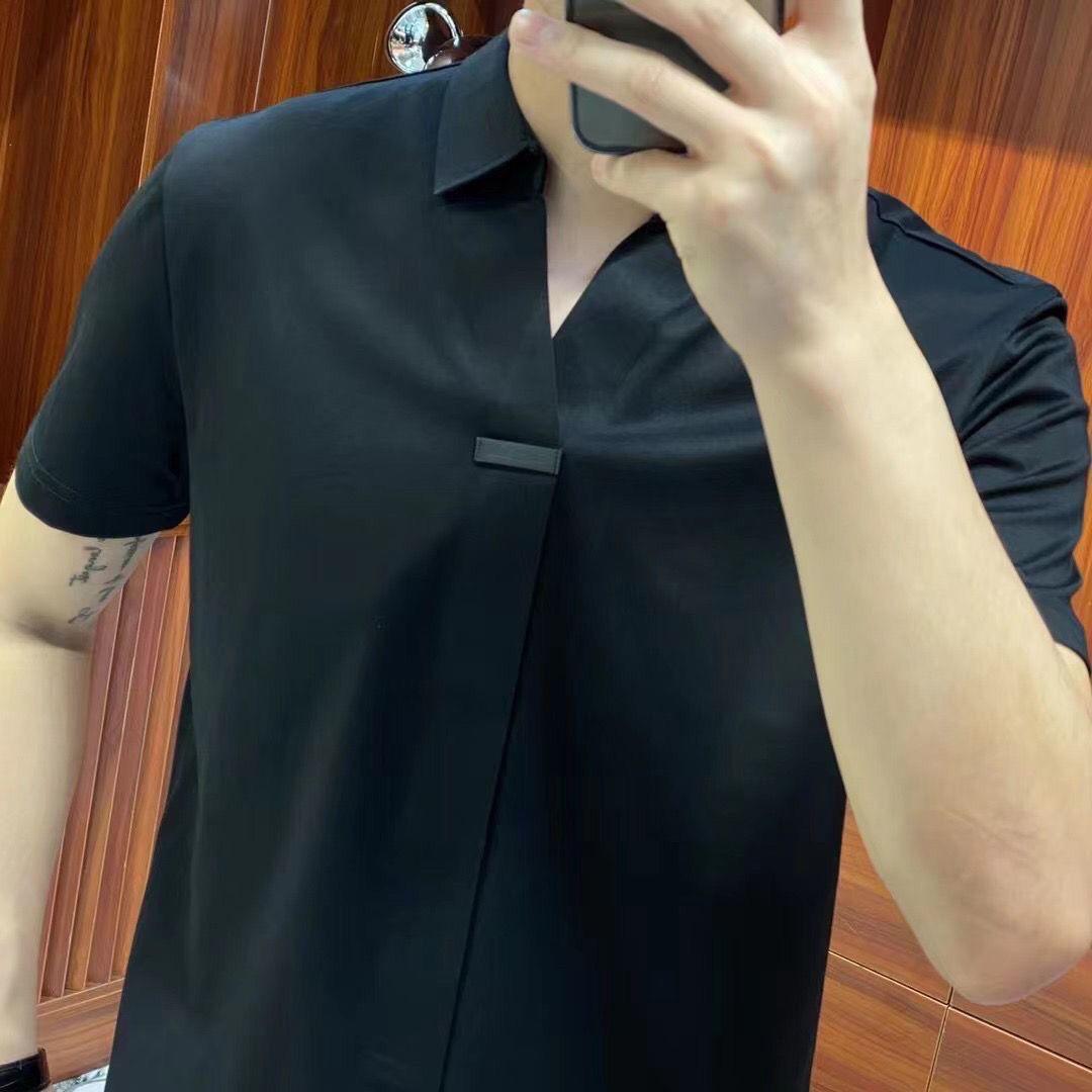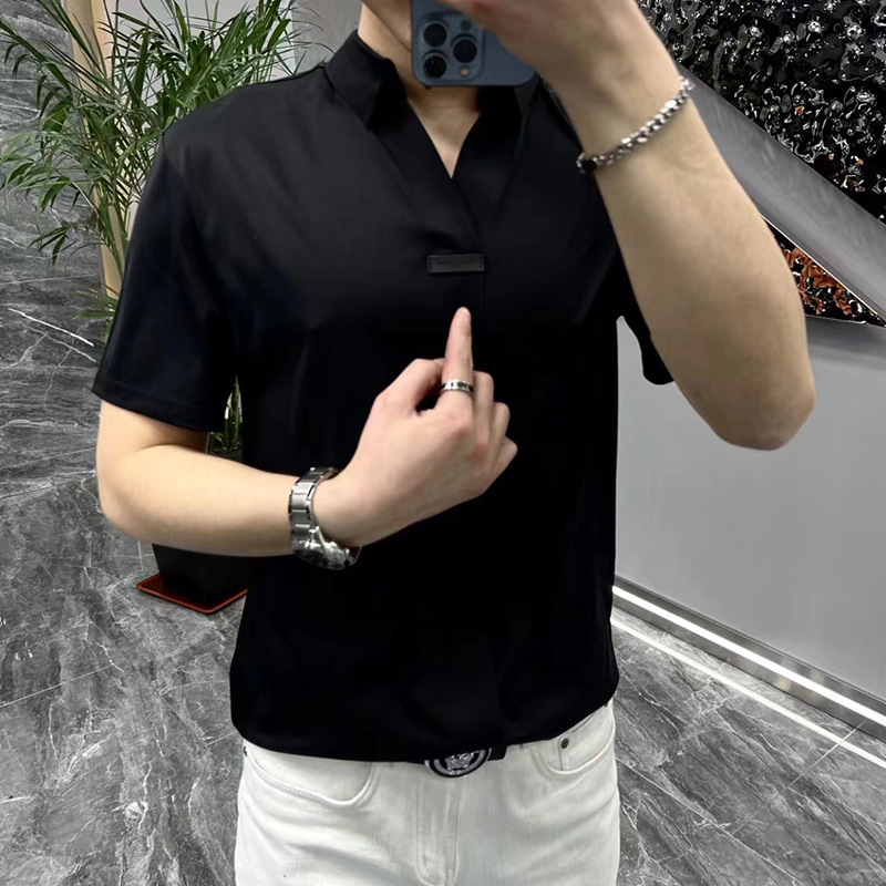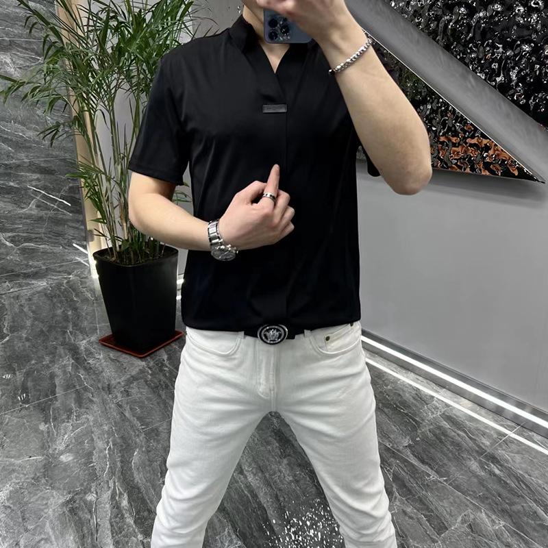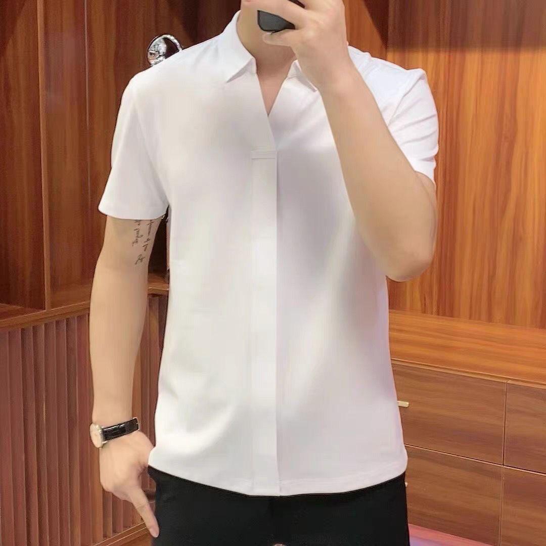 여름 남성 캐주얼 반팔 티셔츠 슬림핏 슬리밍 멋진 패셔너블한 브이넥 베이스 셔츠 세련된 만능 하이 스트리트 반팔 티셔츠