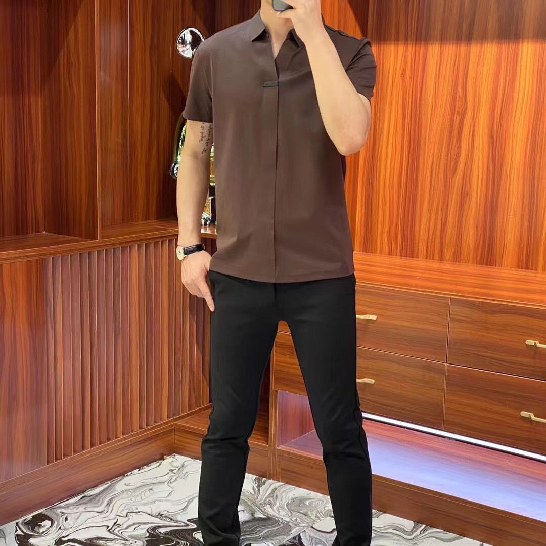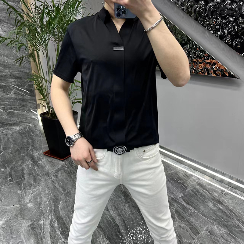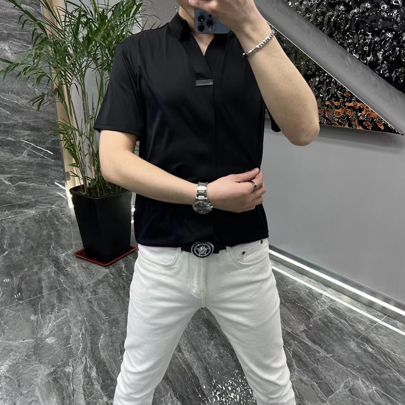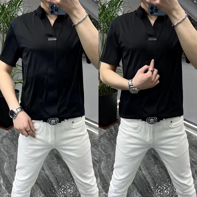 여름 남성 캐주얼 반팔 티셔츠 슬림핏 슬리밍 멋진 패셔너블한 브이넥 베이스 셔츠 세련된 만능 하이 스트리트 반팔 티셔츠