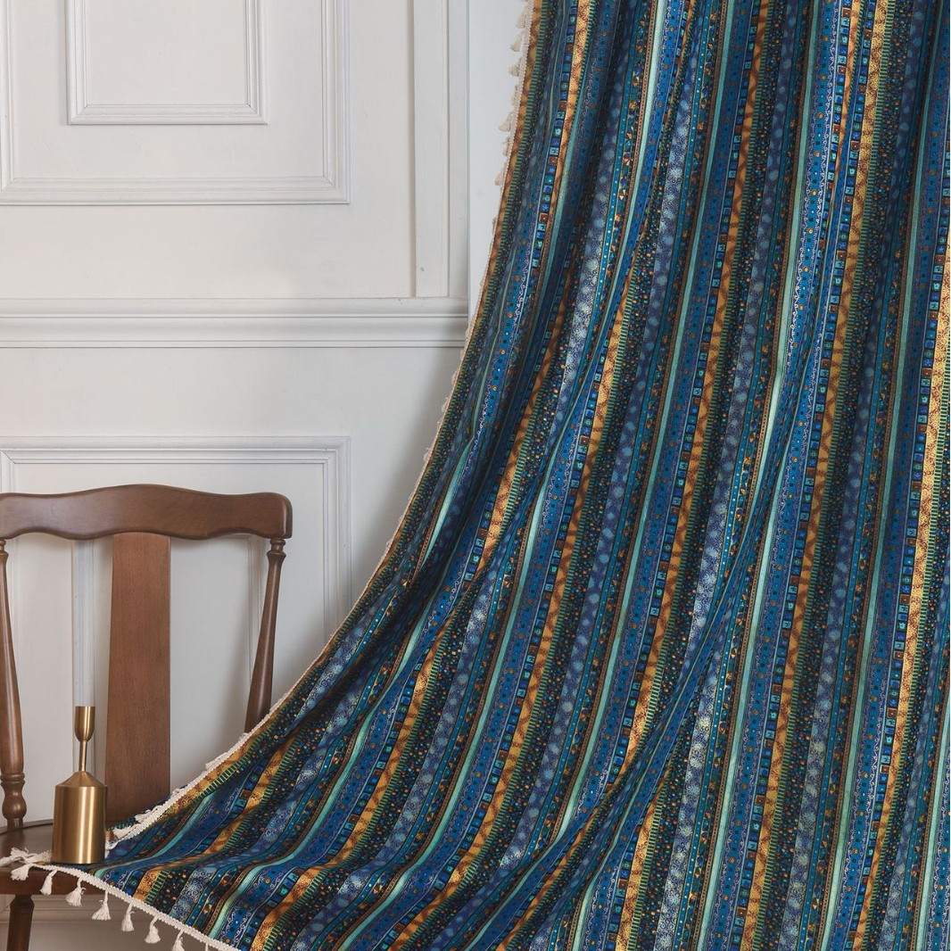 烫金蓝条纹窗帘