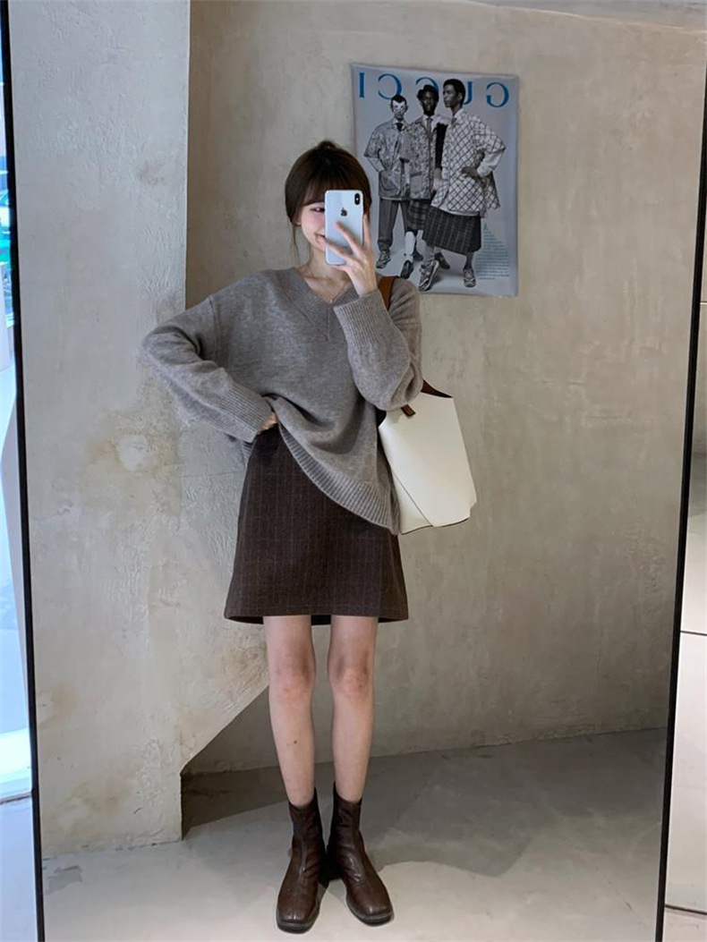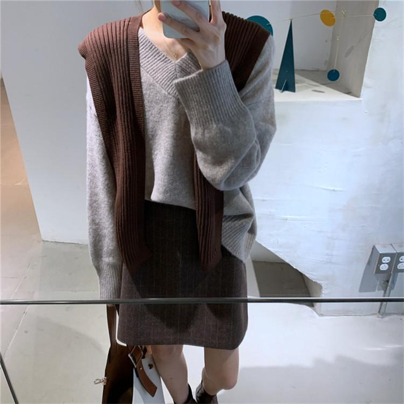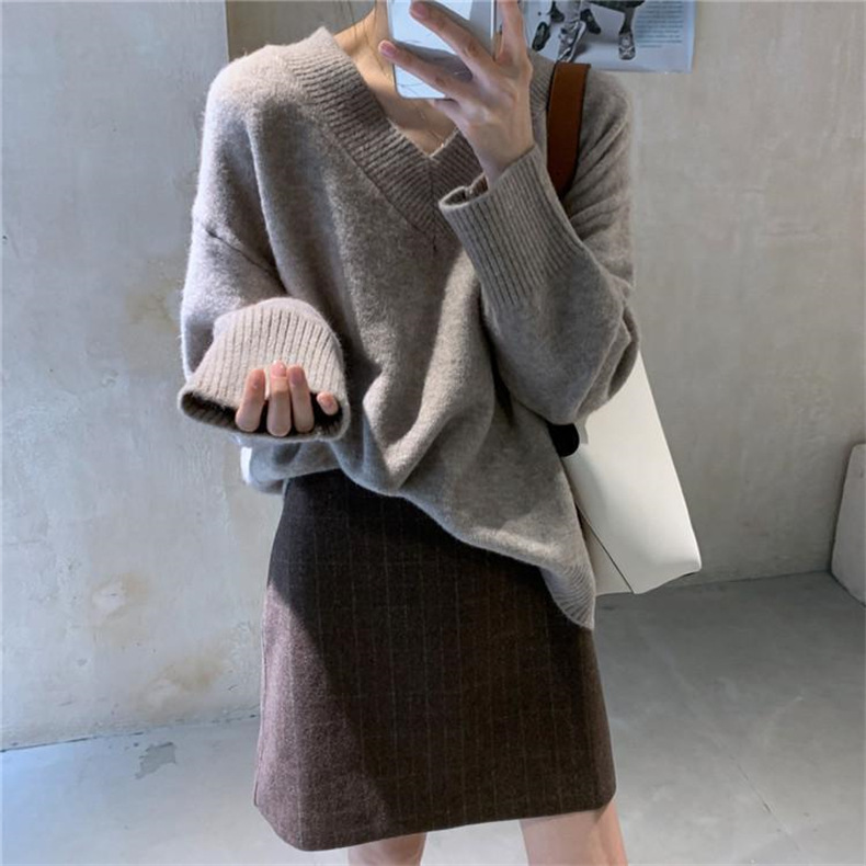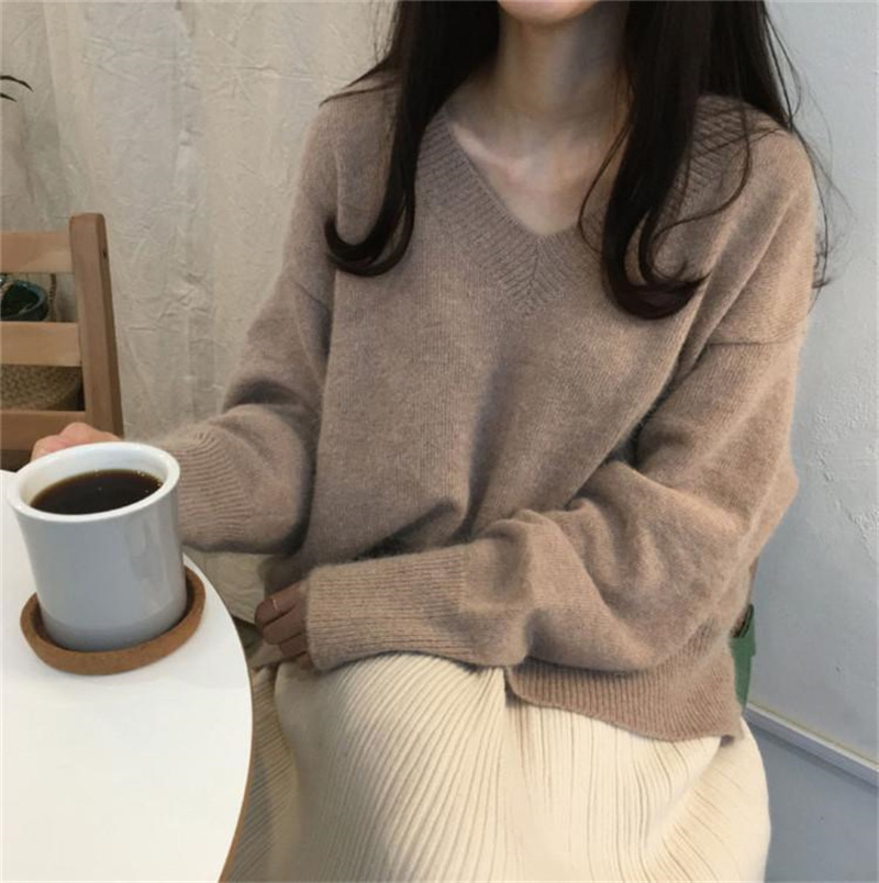 가을과 겨울 한국 스타일 게으른 스타일 V-넥 스웨터 겉옷 여성용 세련된 모든 매치 느슨한 풀오버 니트 베이스 탑스토어 가기