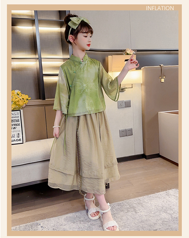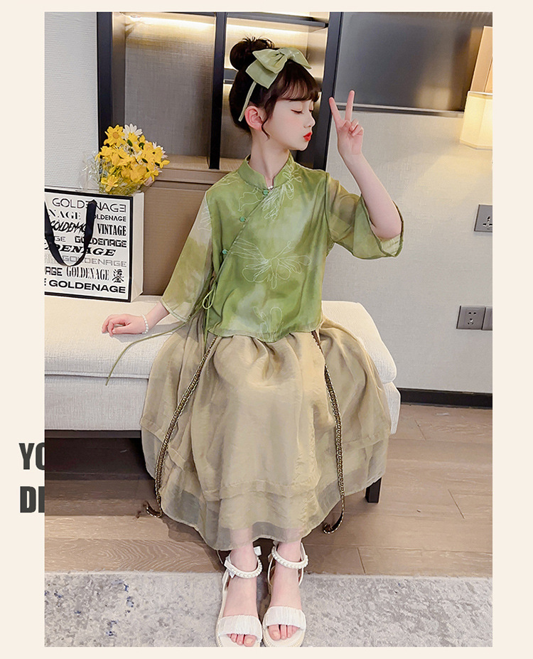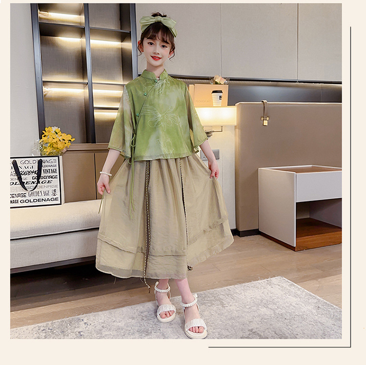 Hanfu 소녀 여름 어린이 스타일 원피스 슈퍼 요정 개선 2023 새로운 큰 어린이 고대 원피스 여름 원피스스토어 가기
